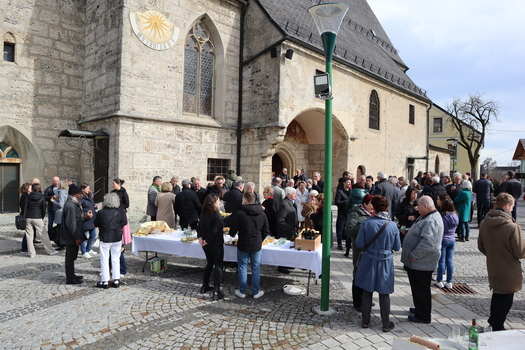 Bei strahlendem Wetter fand am Kirchenplatz das gelungene Fest, bei einer zweistündigen Agape, zu der der Pfarrgemeinderat einlud, seinen Ausklang.
