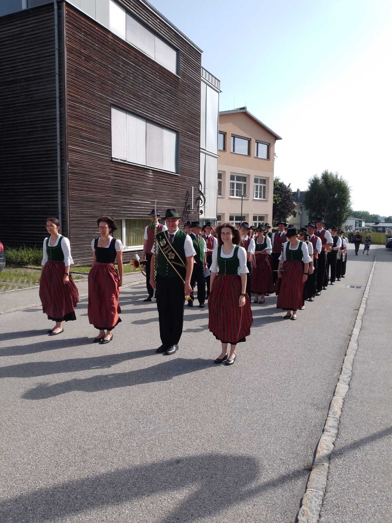 vom Pfarrheim Wolfern begleitet von der Musikkapelle .