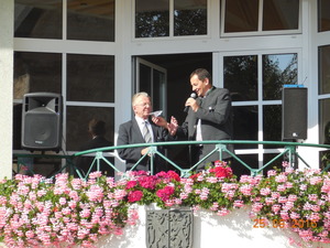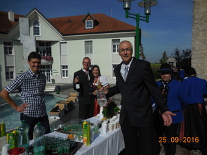 Unser Bürgermeister Karl Mayr gratuliert sehr herzlich unseren Pfarre, für die vielen guten Dienste in den 40 Jahren in unserer Gemeinde.