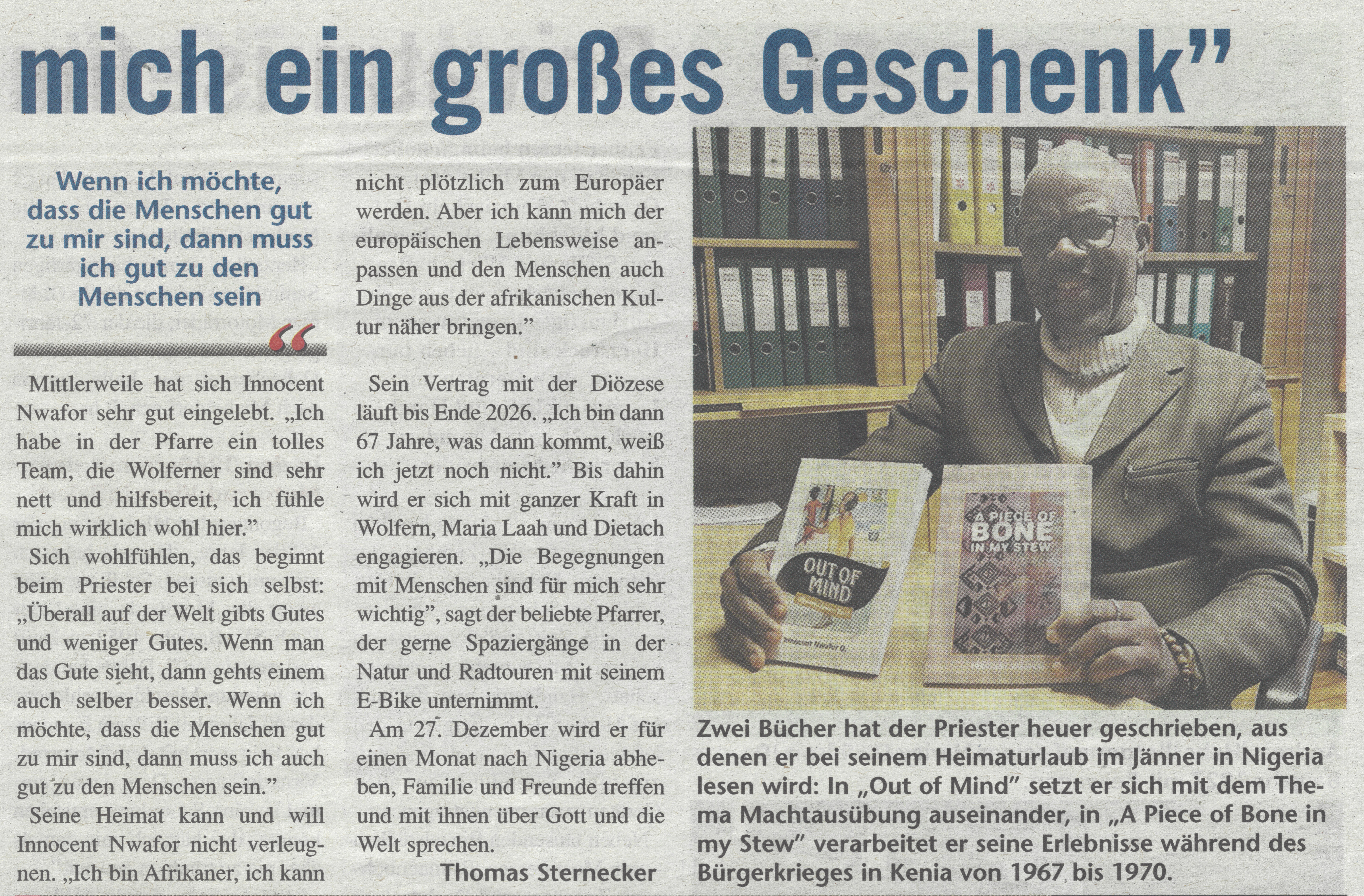 Unser Priester Innocent stammt aus Nigeria und war schon einige Jahre als beliebter Pfarrer und Seelsorger in Gallspach eingesetzt.