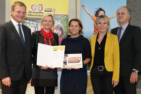 Am 7. November überreichte Landeshauptmann-Stellvertreter Thomas Stelzer die Urkunde „Gesunder Kindergarten“ an unseren Pfarrcaritas-Kindergarten Wolfsegg. Der Weg zur Auszeichnung führte über eine Vorbereitungsphase zu einer zweijährigen Umsetzungsphase und schloss nun mit der Verleihung der Urkunde ab. Leiterin Renate Gebetsroither und Bürgermeisterin Barbara Schwarz nahmen die Auszeichnung entgegen.