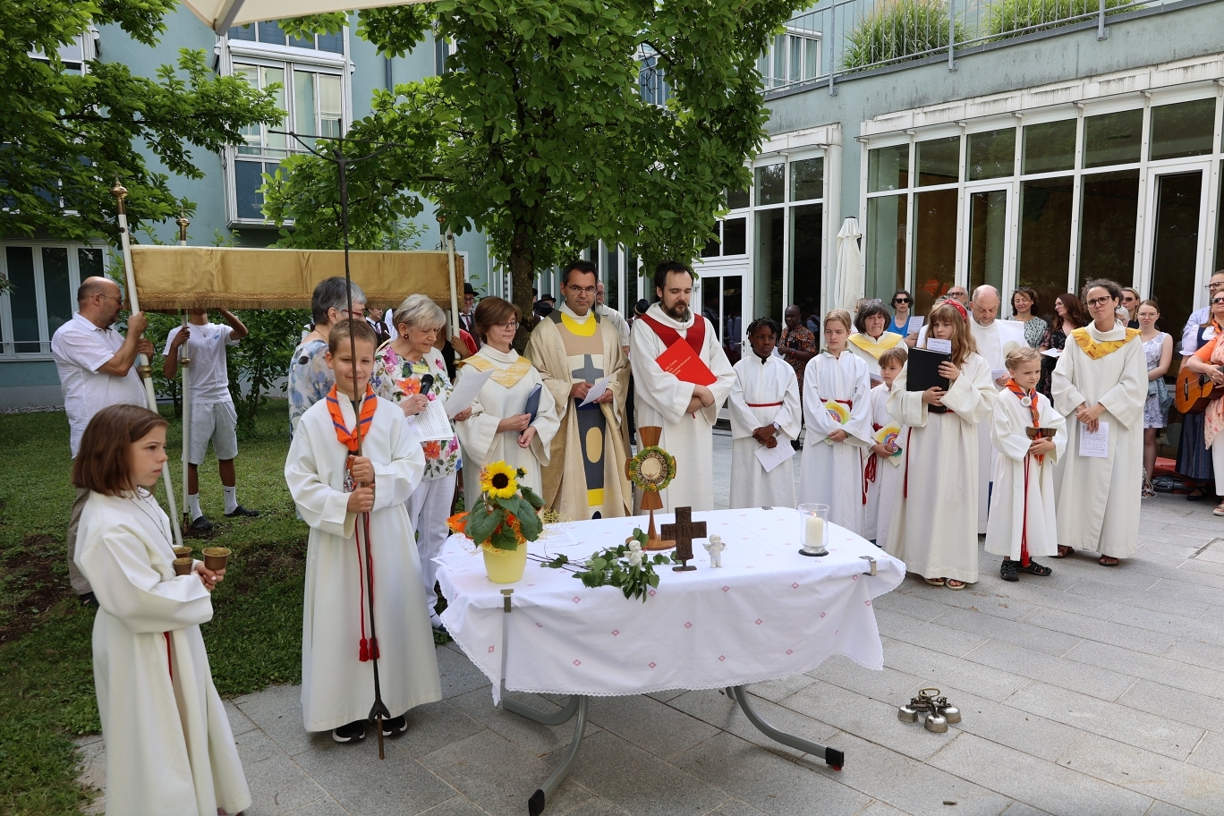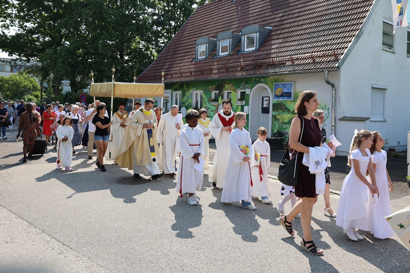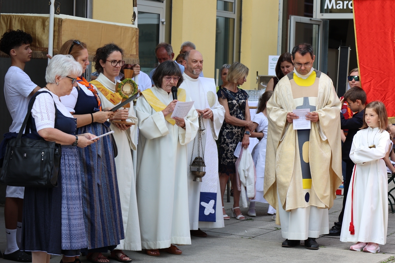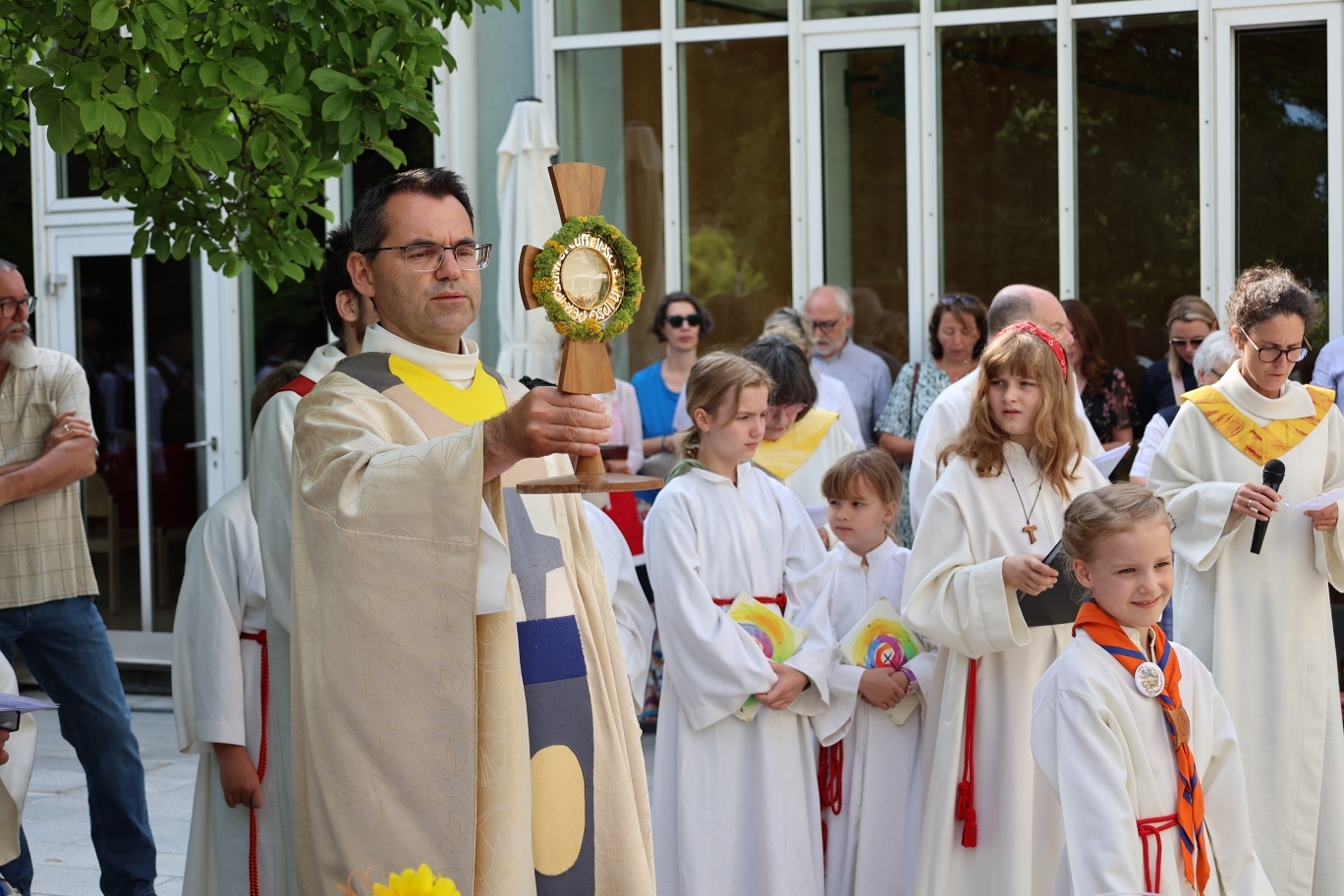 Bei wunderbarem Wetter feierten die Pfarren Quirinus und Marcel Callo gemeinsam am 19.Juni 2025 Fronleichnam. Begonnen hat die Feierlichkeit im Seniorenzentrum Kleinmünchen. Nach einer Prozession durch Auwiesen wurde das Fest in der Kirche Marcel Callo abgeschlossen. Bei anschießenden zusammensitzen bei Gegrillten und Getränken wurden wir noch hervorragend von der Musikkapelle der Kleinmünchner unterhalten.