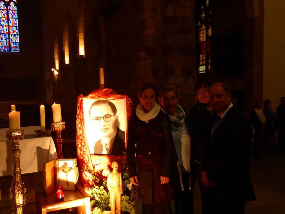 In den vergangenen Tagen war eine Delegation unserer Gemeinde in Rennes in der Bretagne um bei den Feierlichkeiten zum 30 jährigen Jubiläum der Seligsprechung unseres Pfarrpatrons Marcel Callos teilzunehmen. Beim Festgottesdienst haben wir viiiiel Weihrauch eingeatmet, dem Erzbischof beim Predigen zugeschaut, versucht mitzusingen, viele Hände beim Friedensgruß geschüttelt, Umarmungen über uns "ergehen" lassen. Nach dem Gottesdienst haben wir zwei Schwestern Marcel Callos getroffen, mit Familie Pabel geplaudert, die Leiterin vom Marcel-Callo-Haus in Heiligenstadt, Deutschland, Frau Annegret Beck, getroffen und eine Einladung erhalten, unsere Grußbotschaft überbracht, dann mit dem Erzbischof "typisch Bretonisches" gespeist und eine Einladung nach Linz noch einmal ausgesprochen, überrascht die neuen Gedenkbilder betrachtet und... Ja, es war eine intensive Reise mit vielen, vielen Eindrücken!