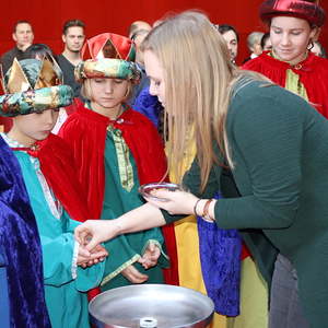 Den Abschluss der Dreikönigsaktion bildete der Gottesdienst, bei dem alle Sternsingerinnen und Sternsinger noch einmal in die Rolle der Königinnen und Könige schlüpften. Der Sternsinger-Rap wurde gezeigt und die Lieder der Dreikönigskation mit allen gemeinsam gesungen. Mit der Zusage "Du bist ein Segen Gottes" durfte jede und jeder ein Weihrauchkorn auf die Kohle legen. Nach dem Gottesdienst wurden noch gemeinsam Fotos gemacht und geplaudert. Es war ein sehr schöner Ausgang für eine sehr intensive Zeit!