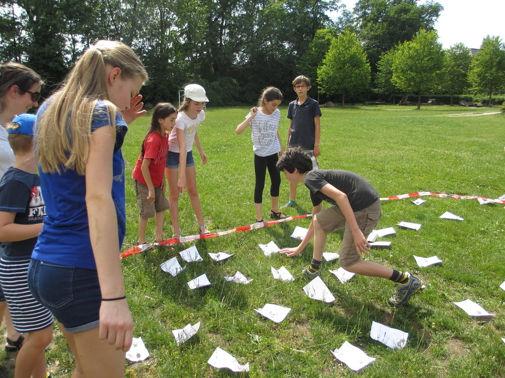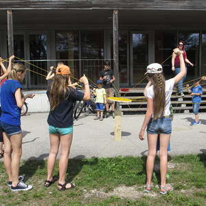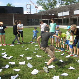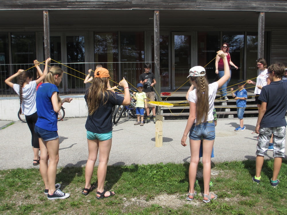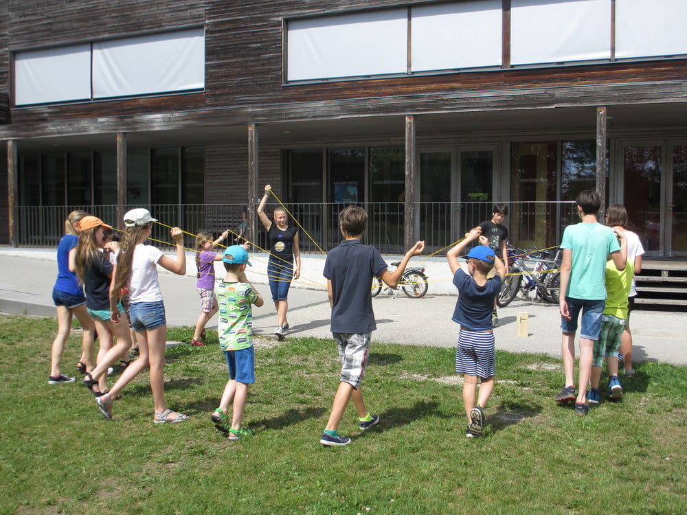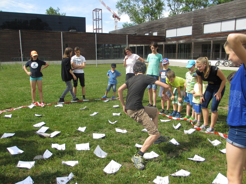 An einem sehr heißen Nachmittag trafen sich rund 20 Kinder mit ihren Gruppenleiter_innen, um einige neue Spiele auszuprobieren. Bei dem ersten Spiel ging es darum gemeinsam einen Turm aufzubauen. Zusammenhalt, Kommunikation und Teamwork waren dabei wichtig. Beim nächsten Spiel standen wieder Kommunikation und Zusammenarbeit im Team im Vordergrund war es doch die Aufgabe, dass ein Kind innerhalb einer vorgegebenen Zeit Zettln in der richtigen Reihenfolge erwischt. Das war nur möglich durch eine gute Strategie innerhalb des Teams und gezielte Zurufe. In einem weiteren Spiel durften die Kinder ausprobieren, wie mit Ungerechtigkeiten umgegangen werden kann und was überhaupt darunter verstanden werden kann. Zum Abschluss ging es darum, dass die Kinder in ihren Kleingruppen "so viel gewinnen wie sie können". Abgeschlossen wurde der Nachmittag mit Ballspielen.