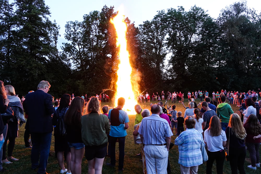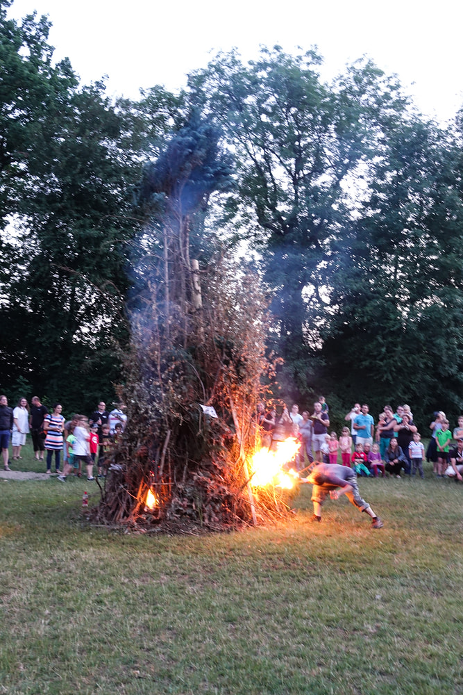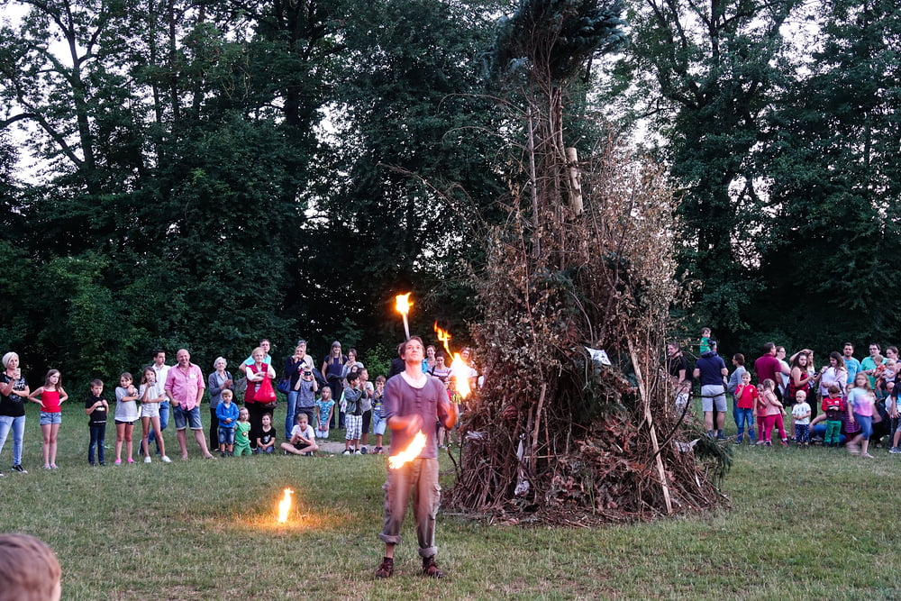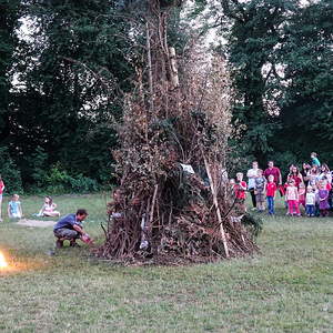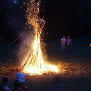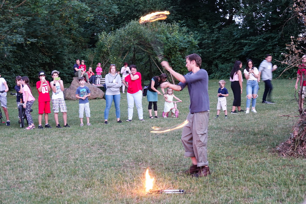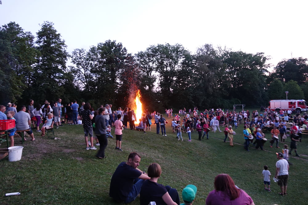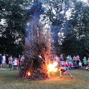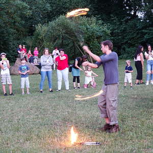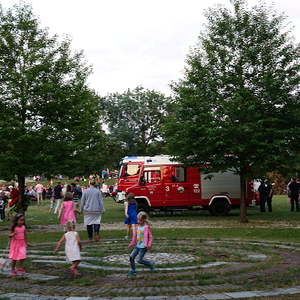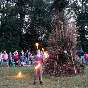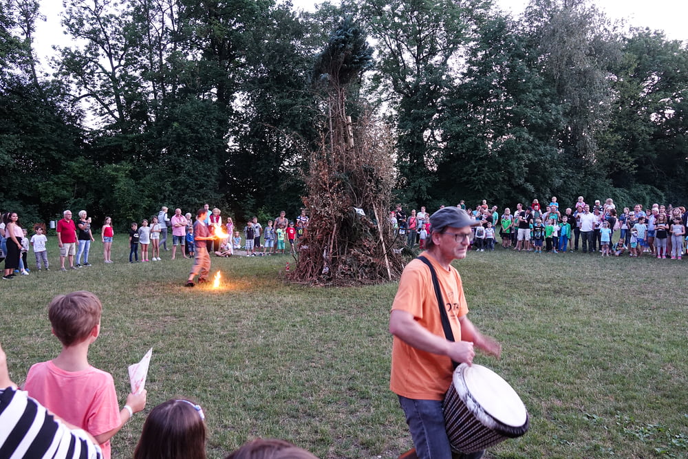 …und so genossen hunderte Frauen, Männer und vor allem Kinder das Franziskusfeuer! Die musikalische Umrahmung durch Trommler, Dudelsackspieler und die Band CODA war sehr stimmig. Einen weiteren Höhepunkt stellte der Feuerjongleur dar, der das Franziskusfeuer spektakulär entfachte.