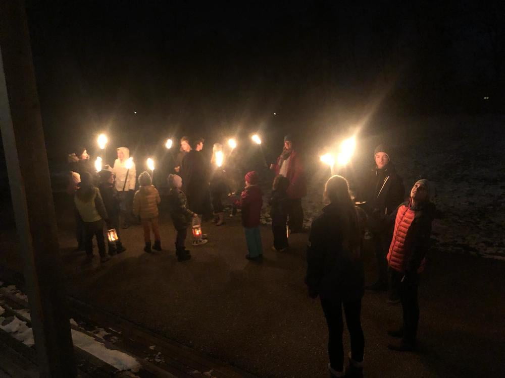 Um einen gemütlichen Vorweihnachtsnachmittag miteinander zu verbringen, trafen sich 25 Kinder und 12 Gruppenleiter_innen zur Adventaktion der Jungschar. Zu Beginn spielten wir einige Spiele und lernten uns, da viele neue Kinder da waren, besser kennen. Als es dann finster wurde, zogen wir uns an, um eine Fackelwanderung zu machen. Ausgerüstet mit Fackeln und Laternen gingen wir los und brachten Licht in die Dunkelheit. Nach der Wanderung stärkten wir uns mit Tee und Keksen. Dann feierten wir gemeinsam Advent, sangen Weihnachtslieder und sprachen über Weihnachten. Zum Abschluss spielten wir noch einige Spiele.