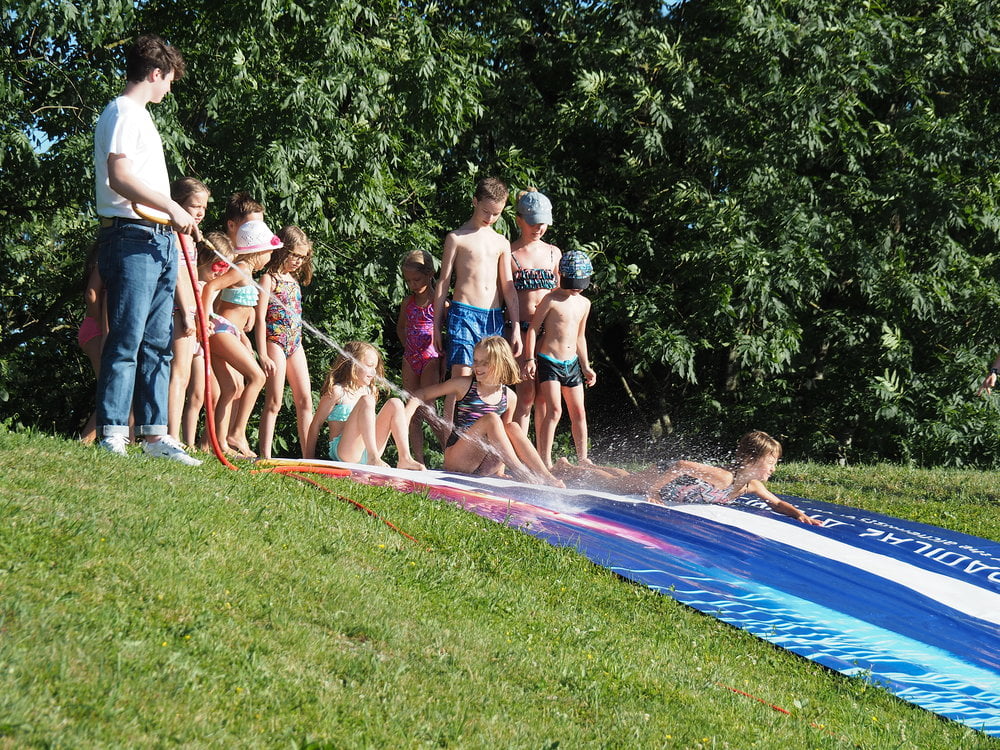 Bevor es für die Jungscharkinder und ihre LeiterInnen in die Sommerpause und auf Jungscharlager geht, verbrachten sie noch einmal einen gemütlichen Nachmittag mit Wasserrutsche und Lagerfeuer.