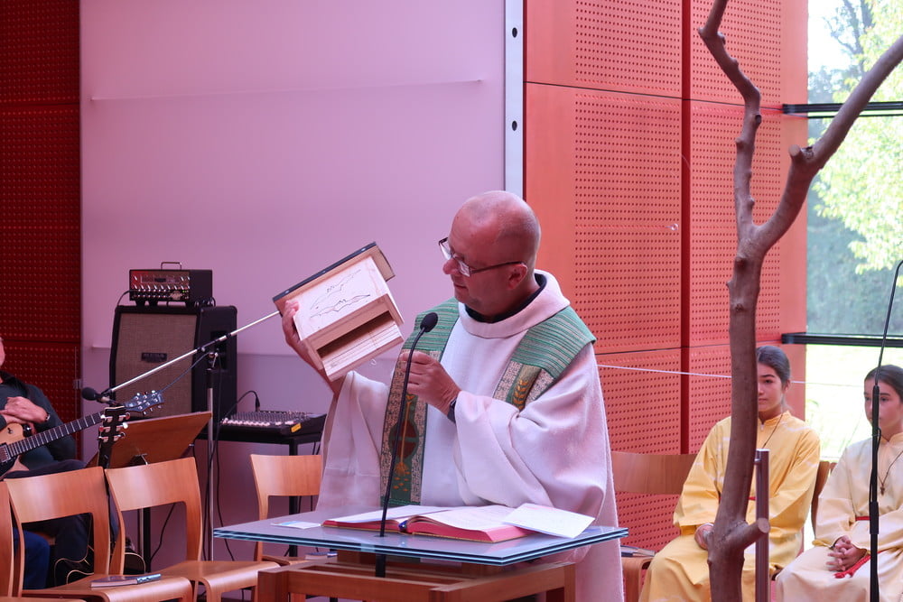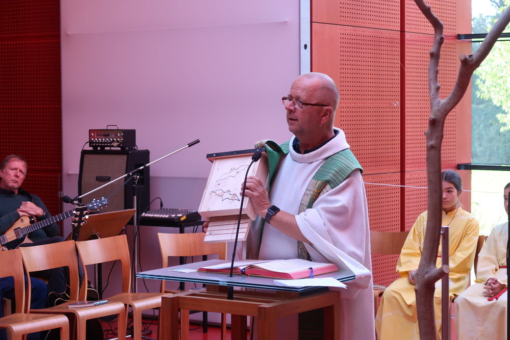 .....auf Fauna und Flora rund um unsere Kirche ein und präsentierte Fledermausnistkästen, die nach dem Gottesdienst auch käuflich zu erwerben waren.