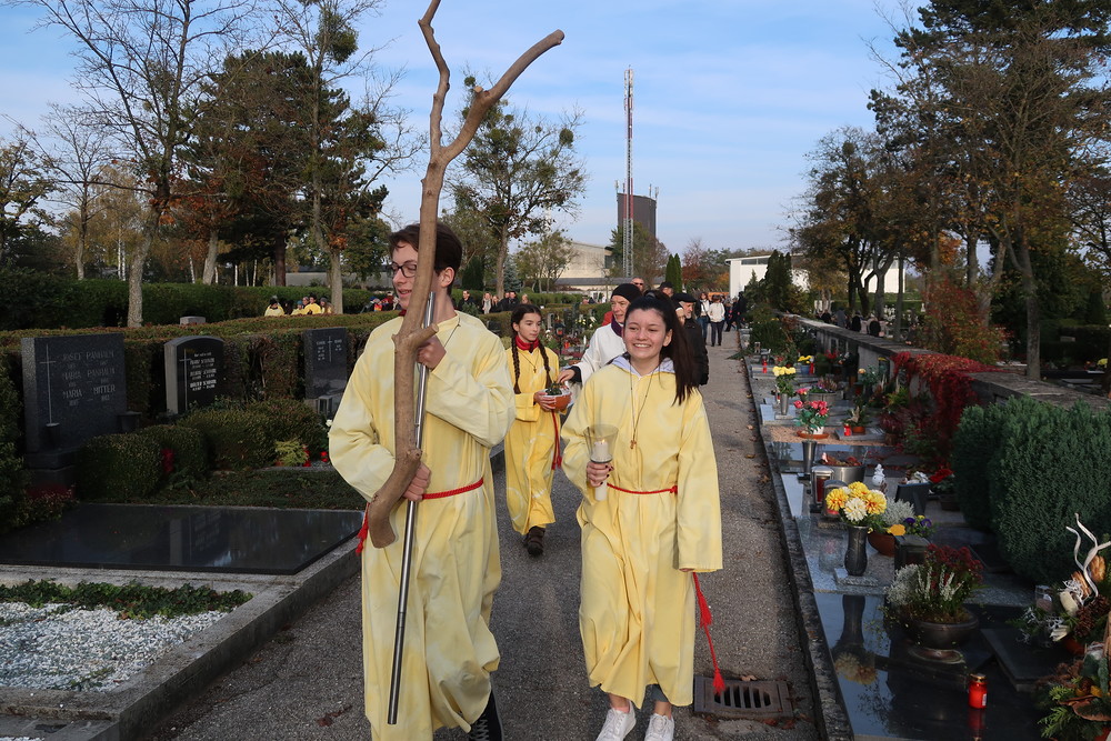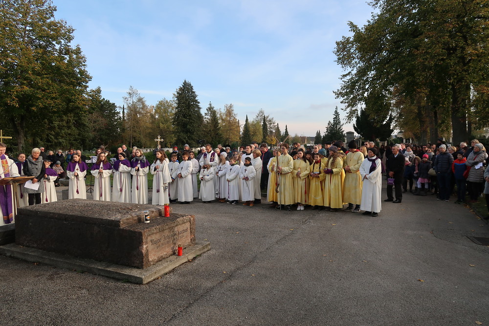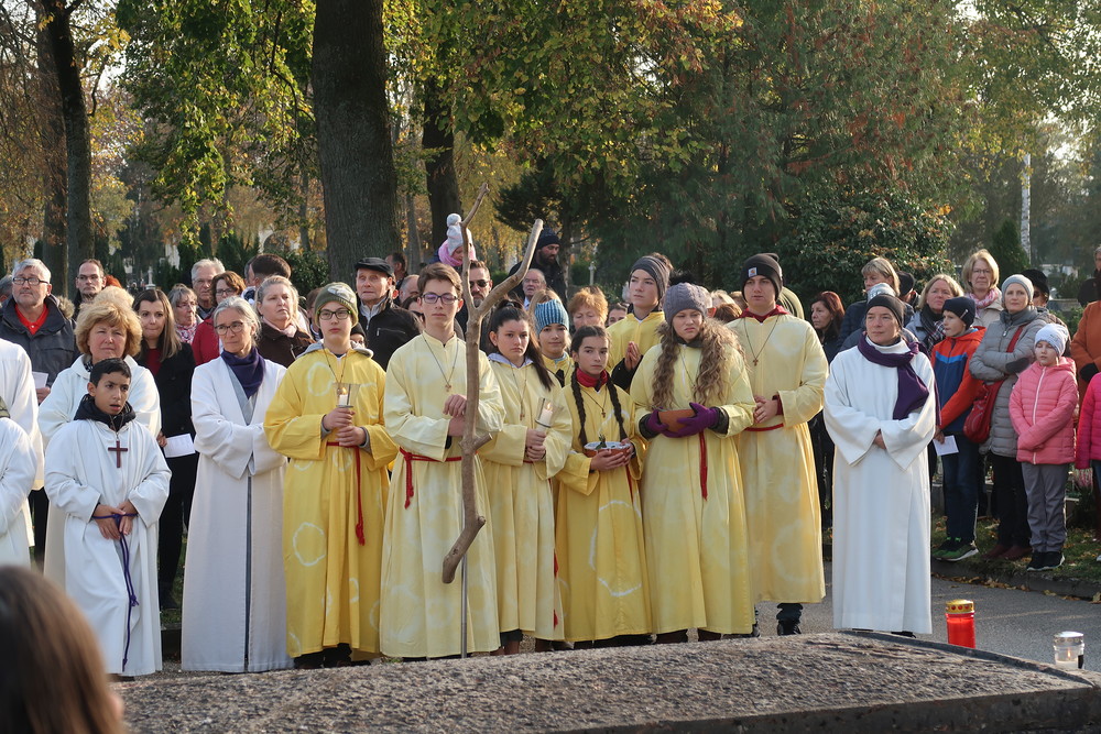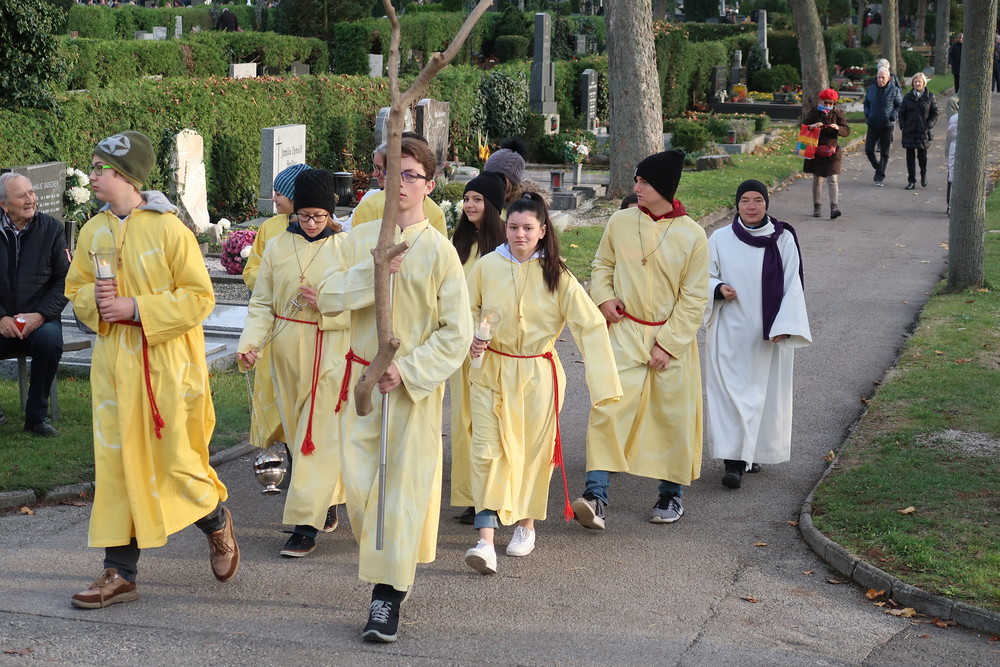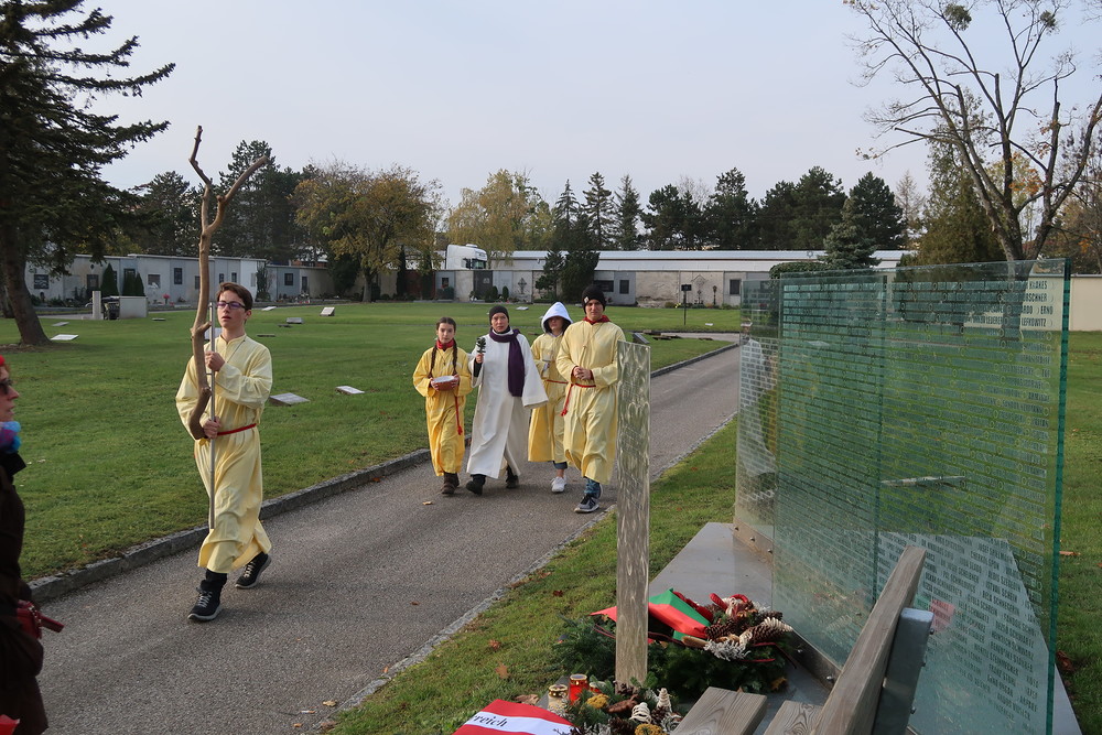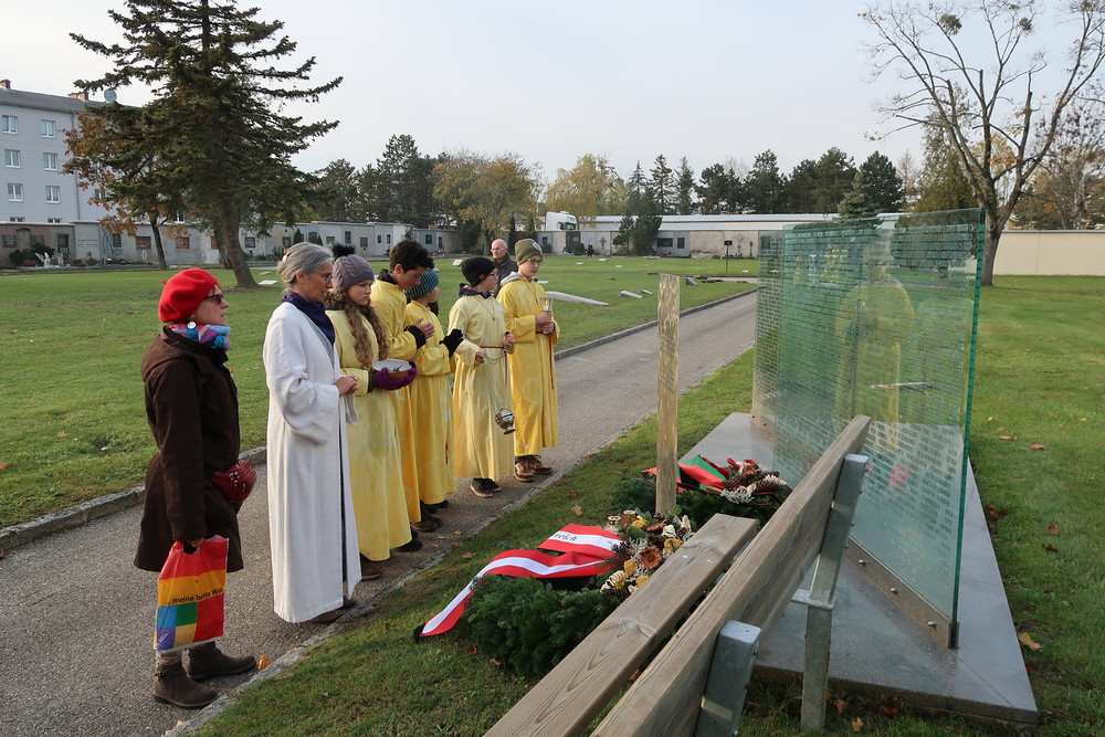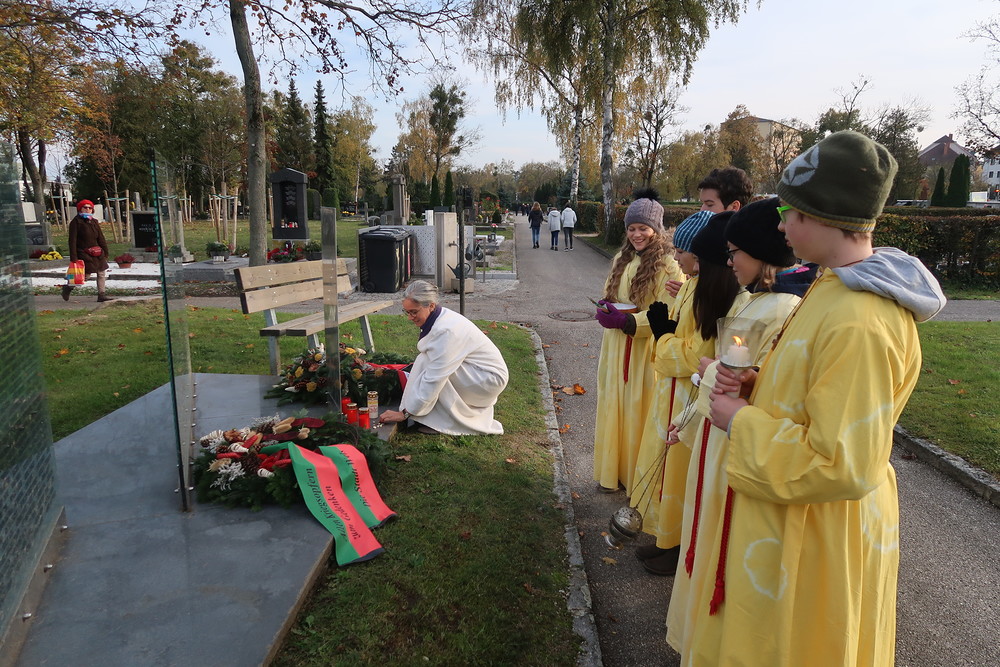 Nach der feierlichen Ansprache und dem gemeinsamen Vaterunser wurden abschließend von den Welser Pfarren die Gräber gesegnet. Die Gruppen unserer Pfarre verweilte auch bei der Gedenkstätte im jüdischen Teil des Friedhofs.