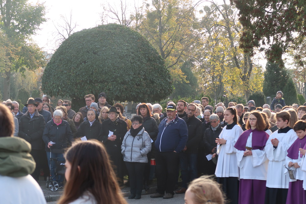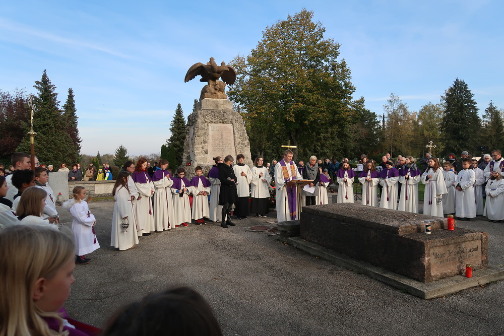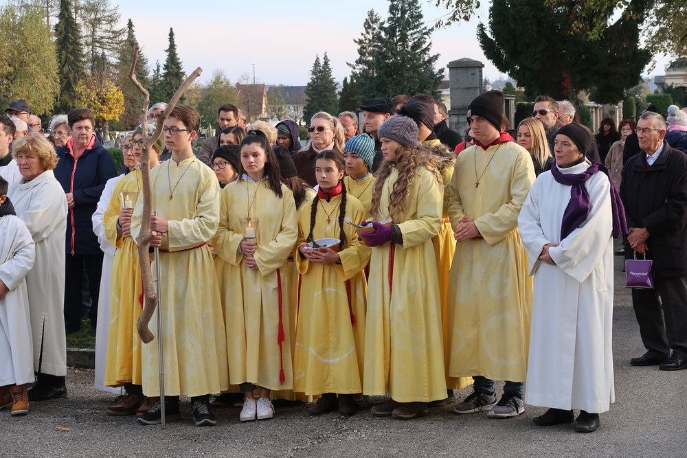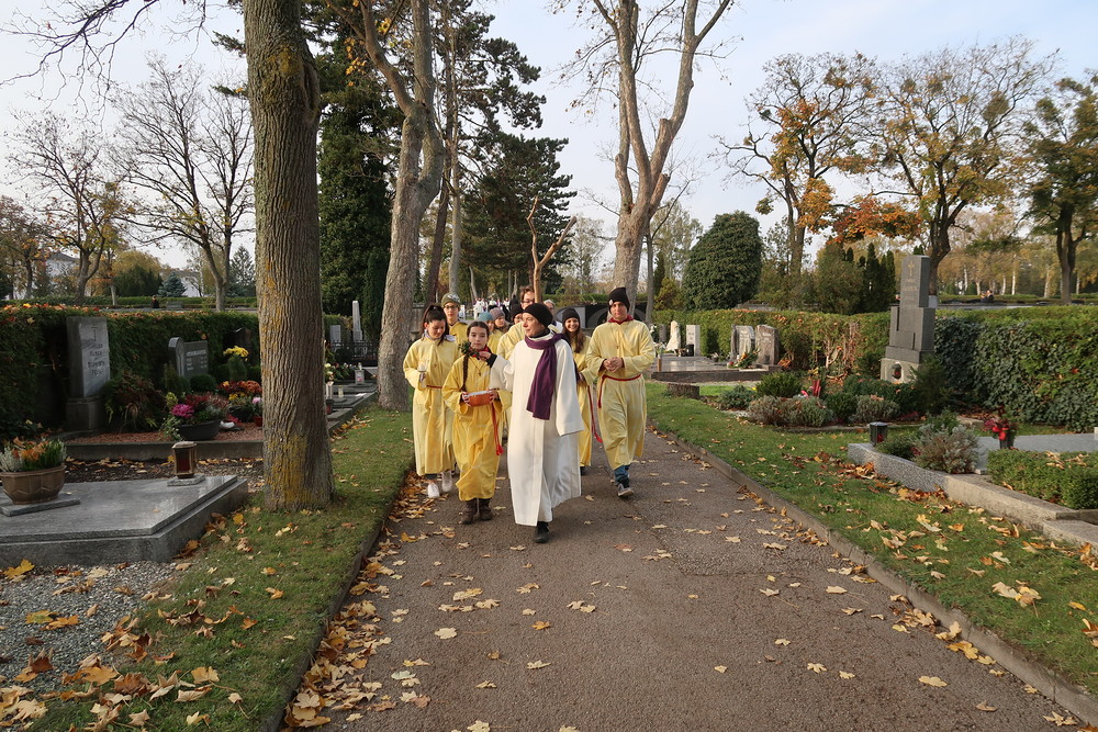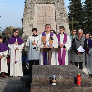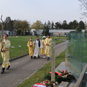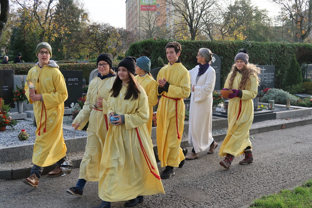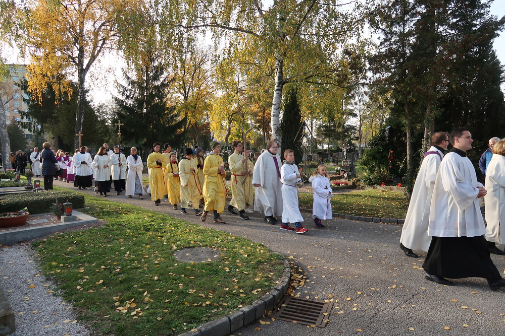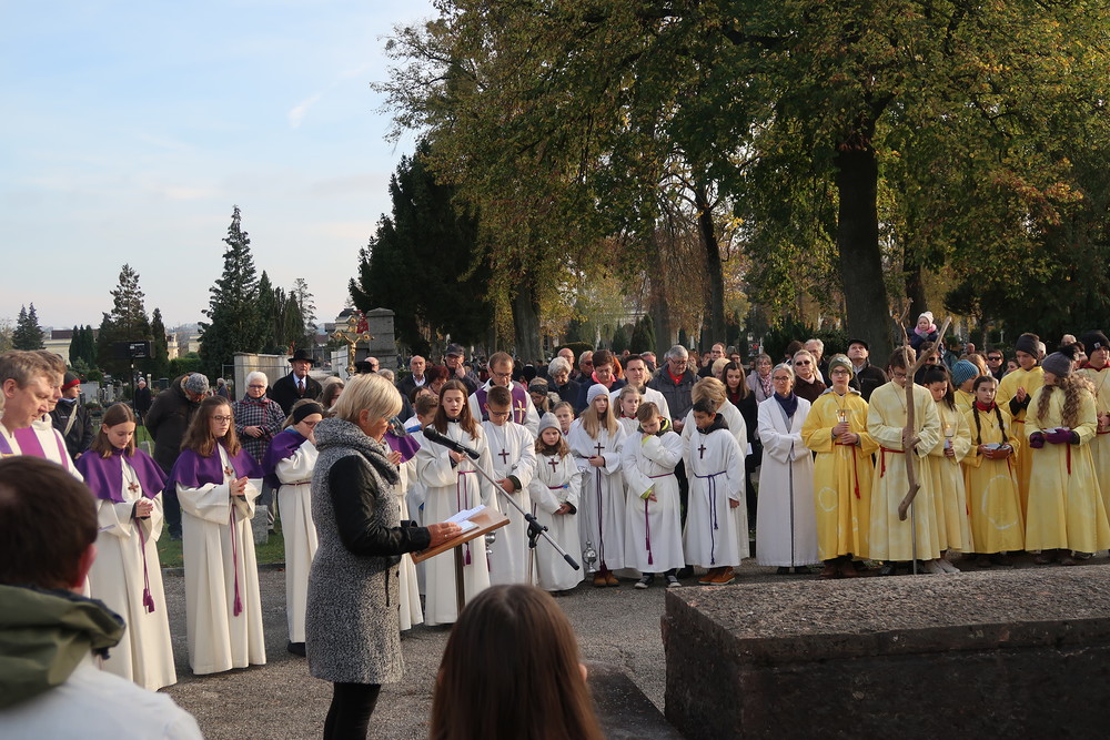 Nach der feierlichen Ansprache und dem gemeinsamen Vaterunser wurden abschließend von den Welser Pfarren die Gräber gesegnet. Die Gruppen unserer Pfarre verweilte auch bei der Gedenkstätte im jüdischen Teil des Friedhofs.