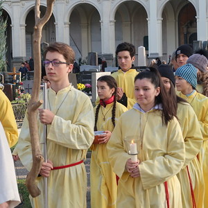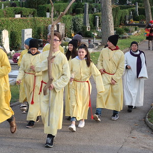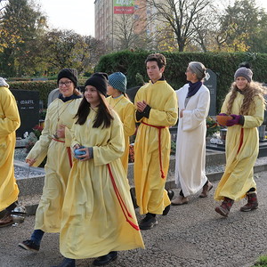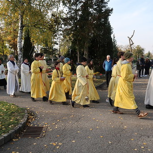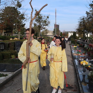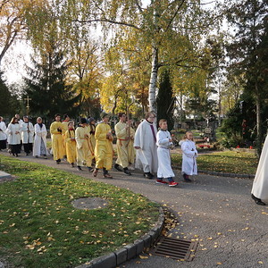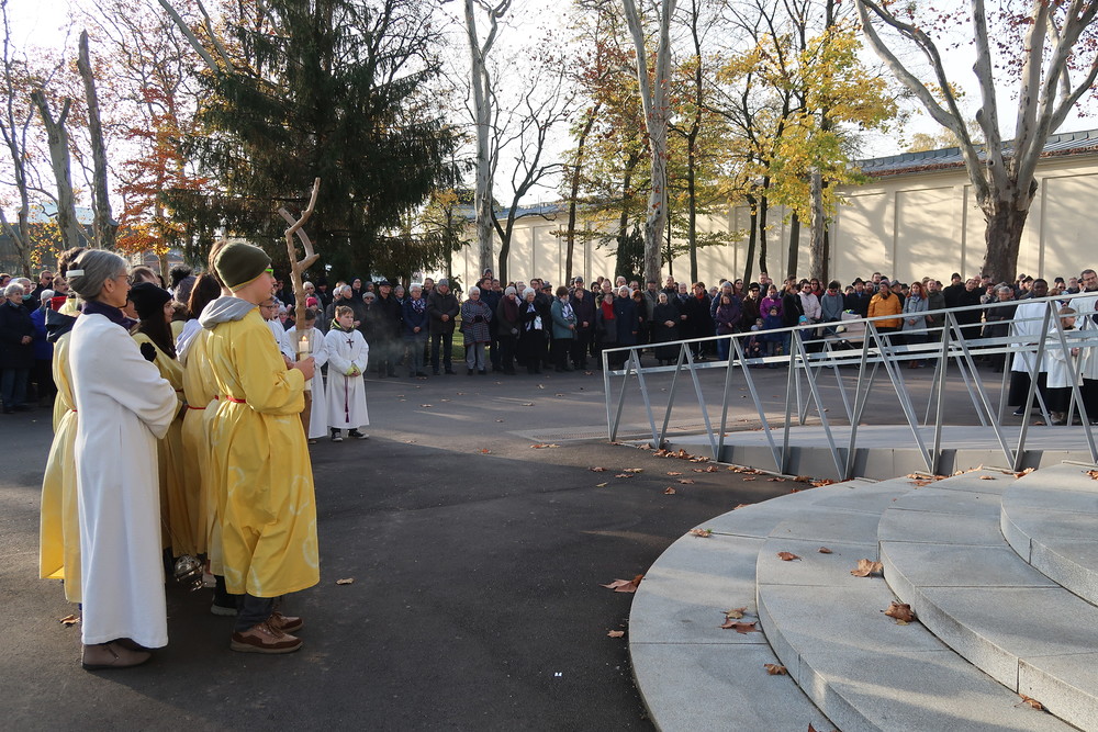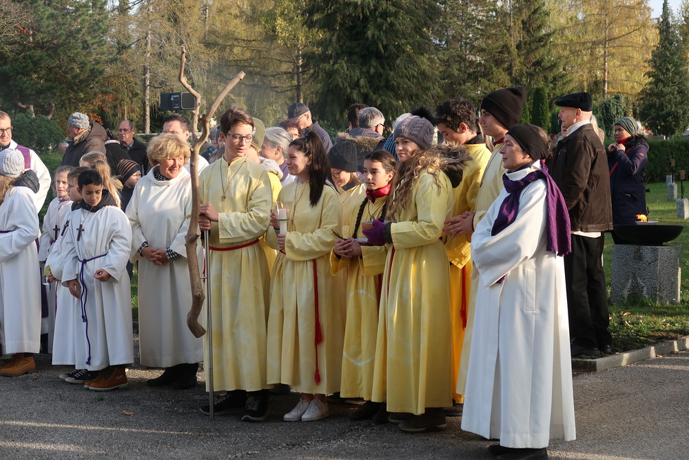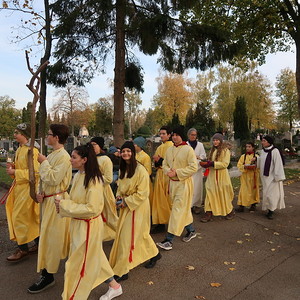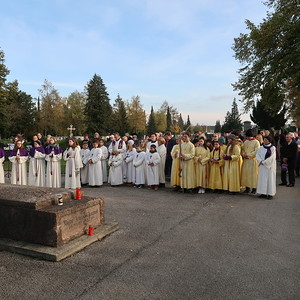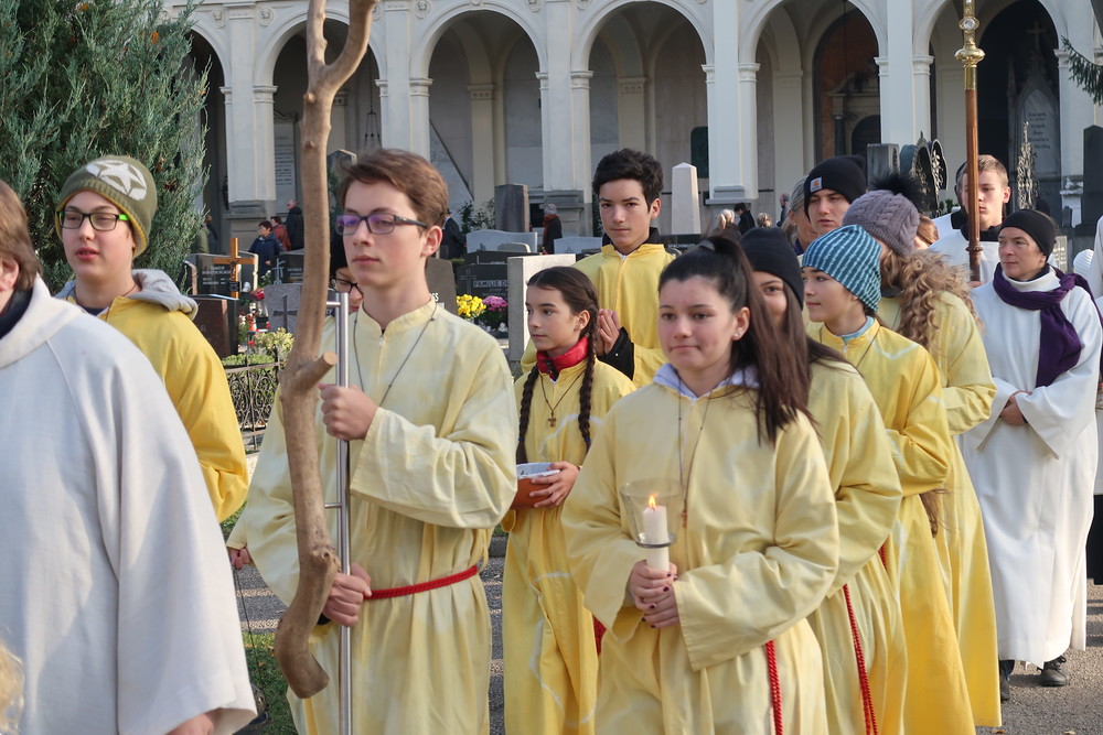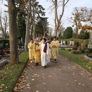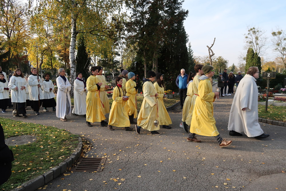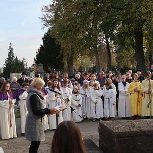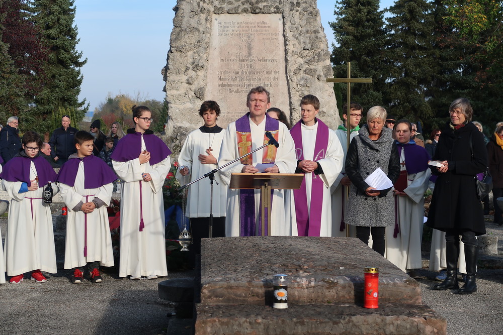 Nach der feierlichen Ansprache und dem gemeinsamen Vaterunser wurden abschließend von den Welser Pfarren die Gräber gesegnet. Die Gruppen unserer Pfarre verweilte auch bei der Gedenkstätte im jüdischen Teil des Friedhofs.
