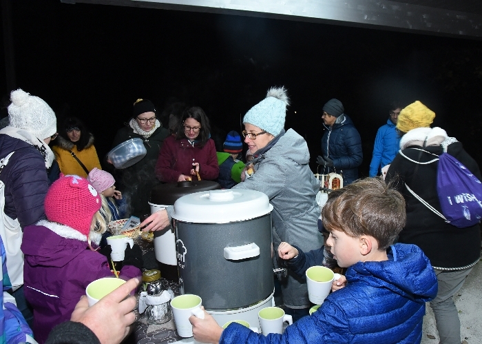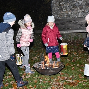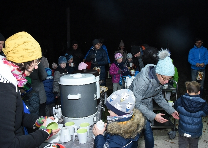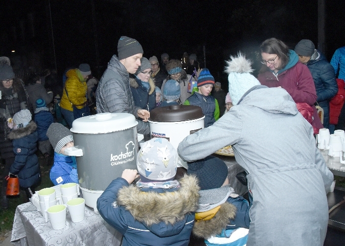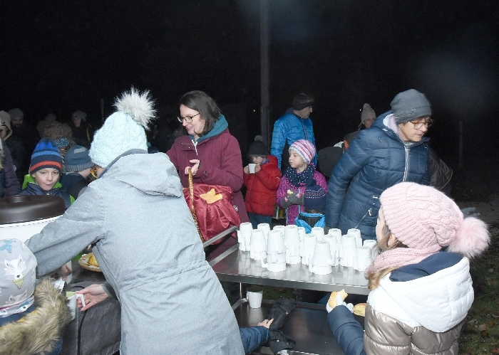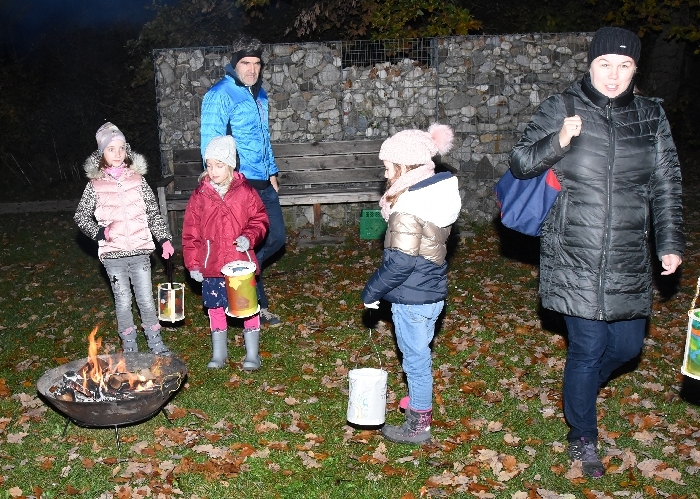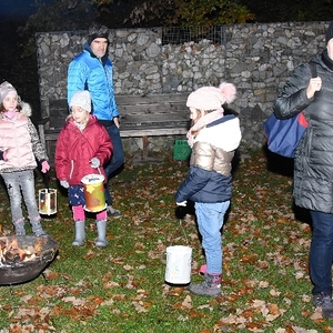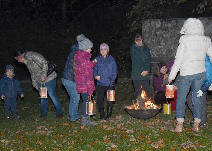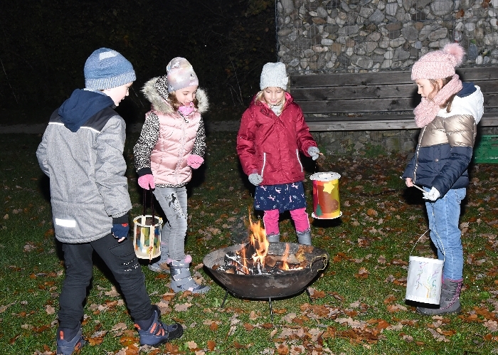 Unser Laternenumzug endete bei der schön flackernden Feuerstelle, wo es nach der Kipferl- und Kindersegnung durch unseren pastoralen Mitarbeiter Giuseppe, Martinskipferl zum Teilen und warmen Tee, gab.