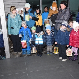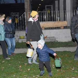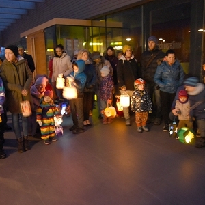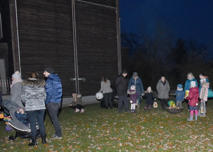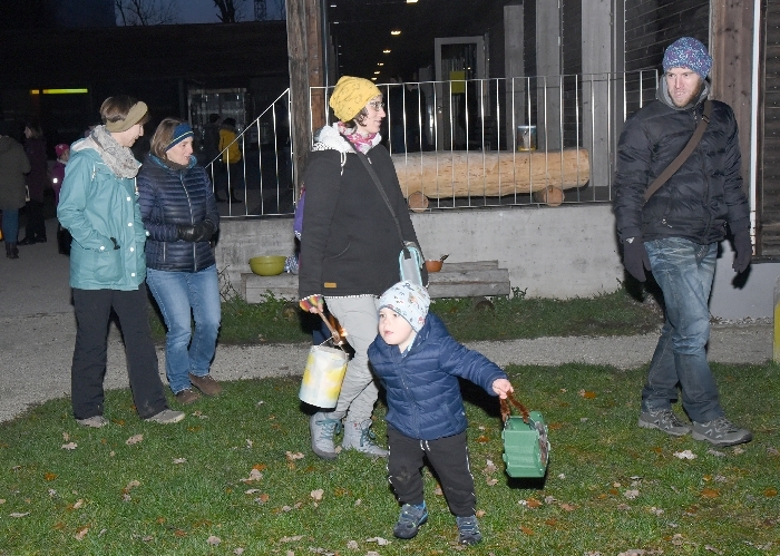Die Laternen leuchteten in allen Farben, und mit Rabimmel und Rabammel zogen alle BesucherInnen singend unseren Musikern Silvia (Akkordeon), Manfred (Akkordeon) und Giuseppe (Gitarre) hinterher.