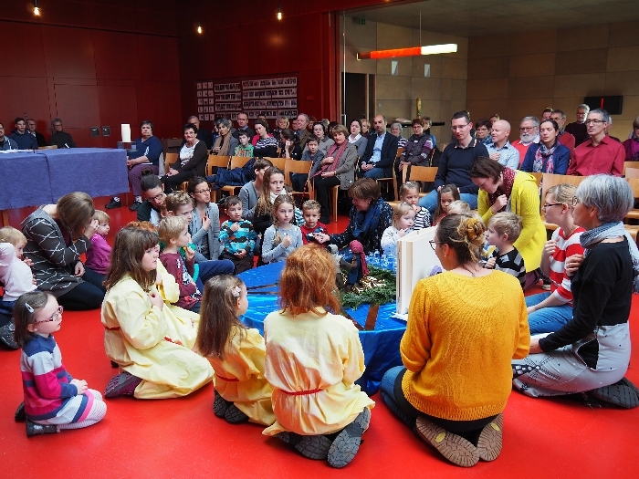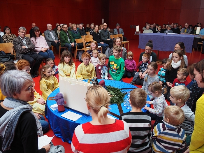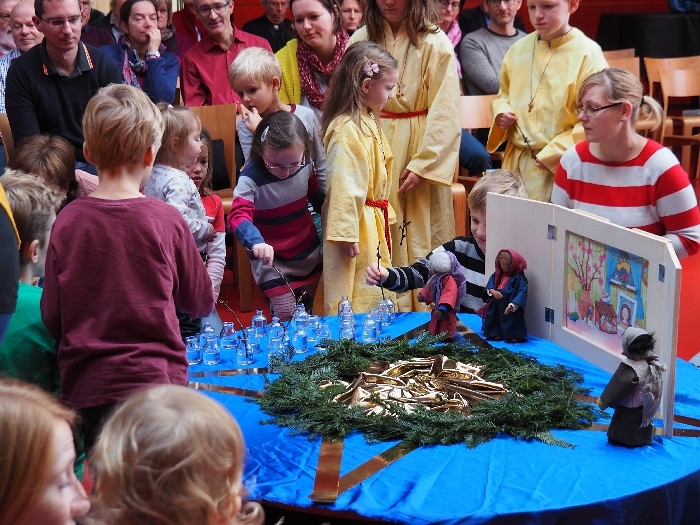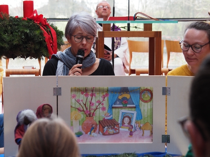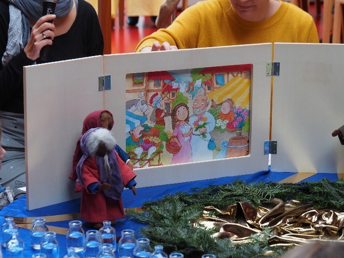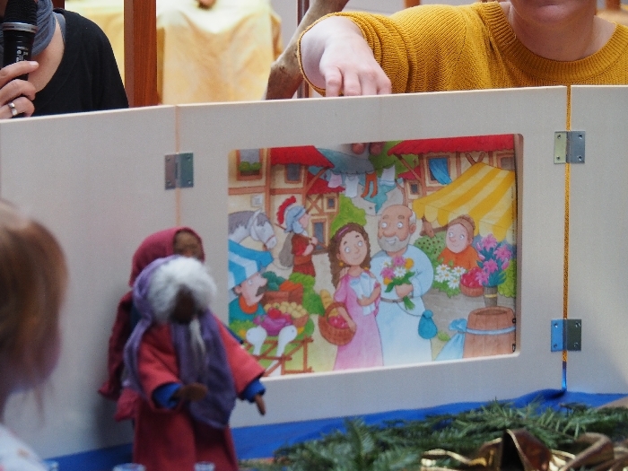 Die Aufmerksamkeit der Kinder war groß, als wir die Geschichte der Heiligen Barbara mit einem Kamishibai erzählten.