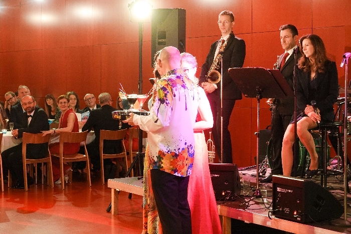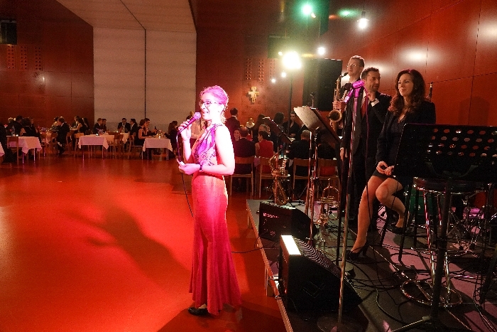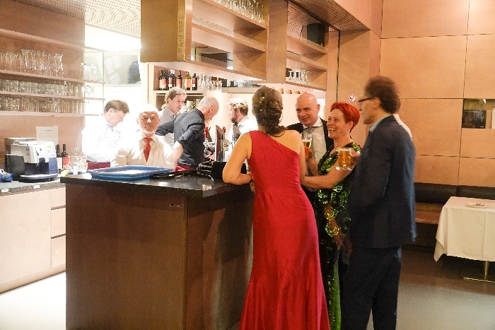 Der Saal und die Jazzbar waren geschmackvoll und in mühevoller Kleinarbeit von Sylvia Mallinger und Tatjana Nömeyer exzellent dekoriert. Christian Auinger hatte kreative, farbenfrohe Cocktails anzubieten. Das leibliche Wohl kam auch nicht zu kurz.