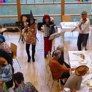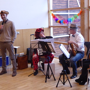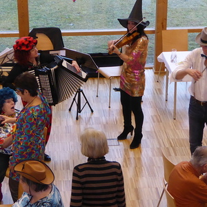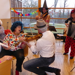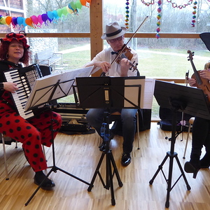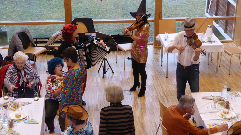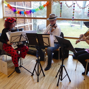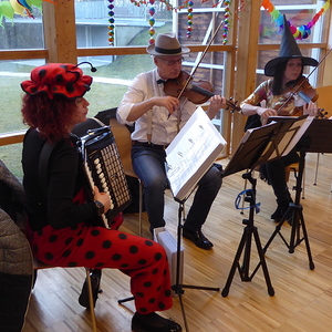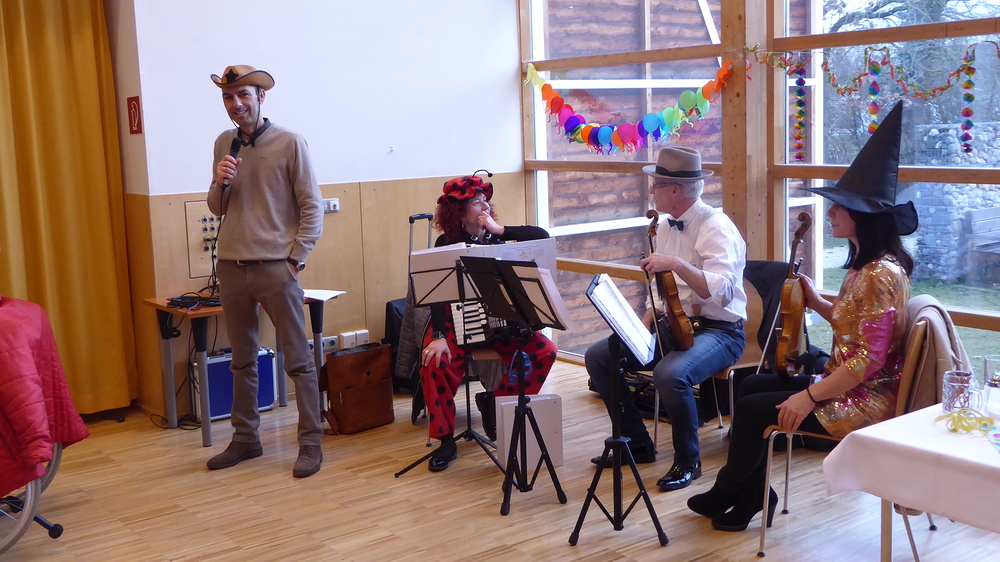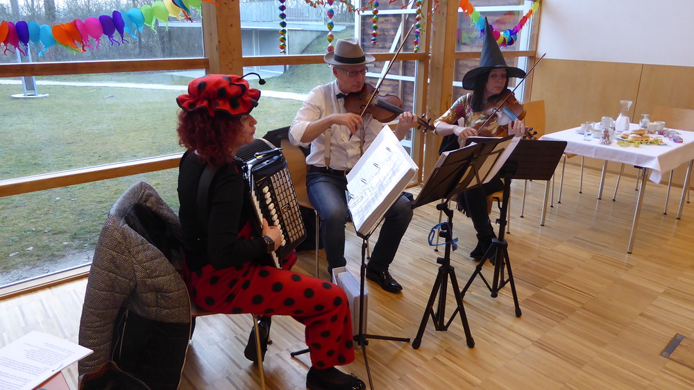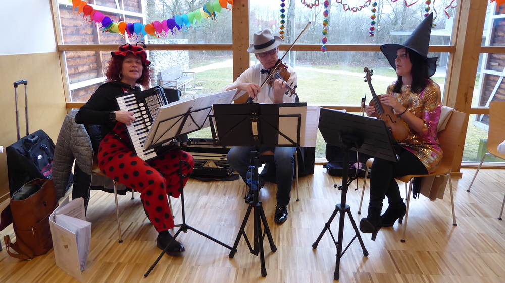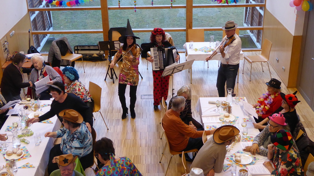 ..... Zwei Geigen und ein Akkordeon trafen für alle den richtigen Ton. Von Wiener Liedern über alte Schlager war für jeden etwas dabei. Und da uns das Trio auch noch die Texte ausgedruckt hat, wurde bei z.B.: Schuld war nur der Bossa nova, Itsy, bitsy, Schneewalzer, griechischer Wein, das kleine Beisl, und, und, und…, fleißig mitgesungen, was natürlich auch die Stimmung steigerte, da die Musiker auch mit Spaß bei der Sache waren. Ein paar lustige Geschichten rundeten das Programm ab.