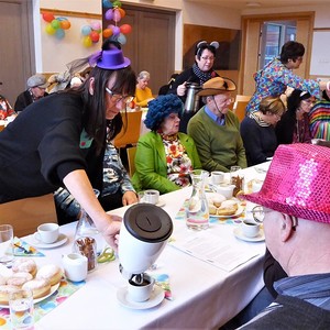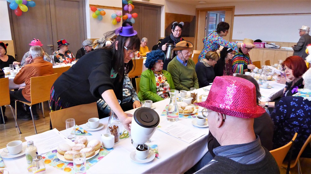 Die Mitarbeiter des Sozialkreises haben wieder für ein großartiges Ambiente und für Service bei Kaffee, Getränken und Faschingskrapfen gesorgt.