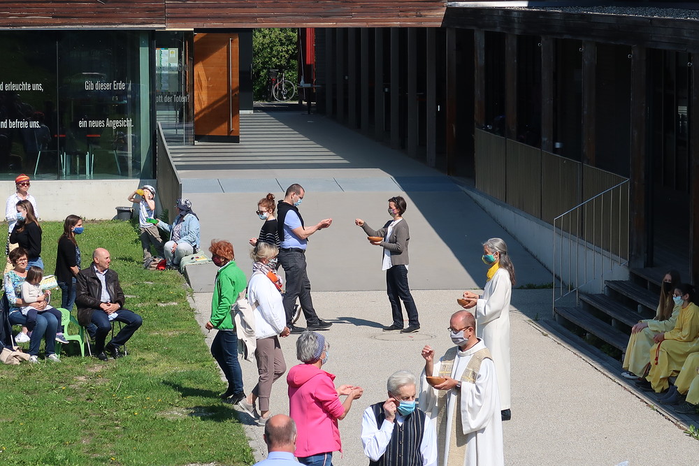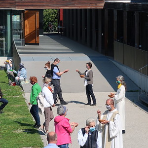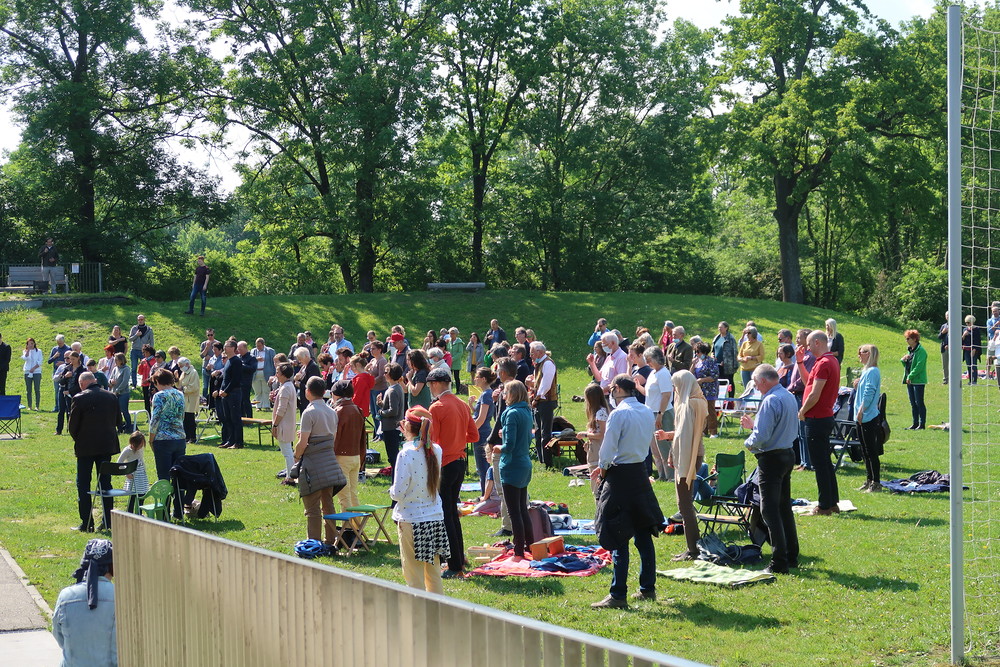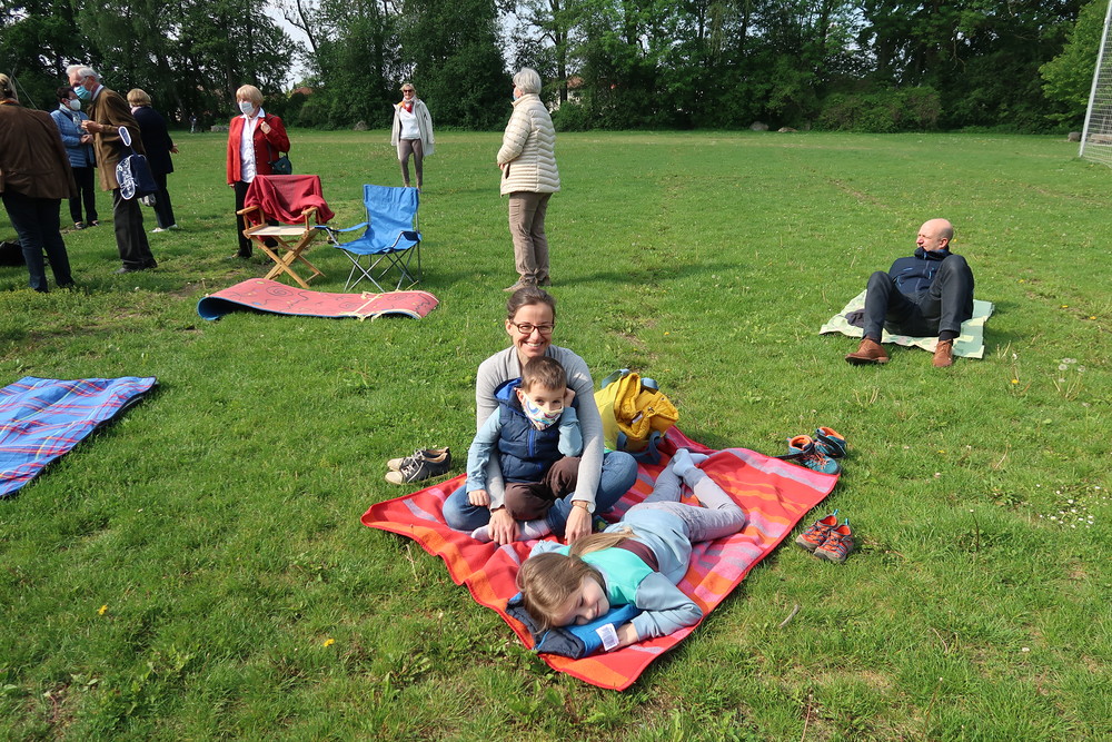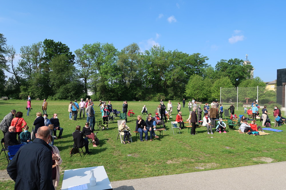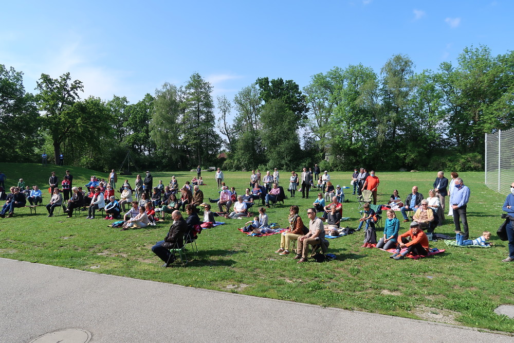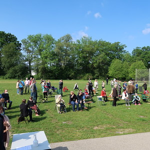 Wir haben unseren ersten - sehnsüchtig erwarteten - Gottesdienst im Freien gefeiert, mit genügend Abstand, frischer Luft und Sonnenschein.