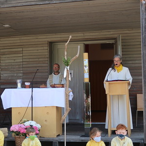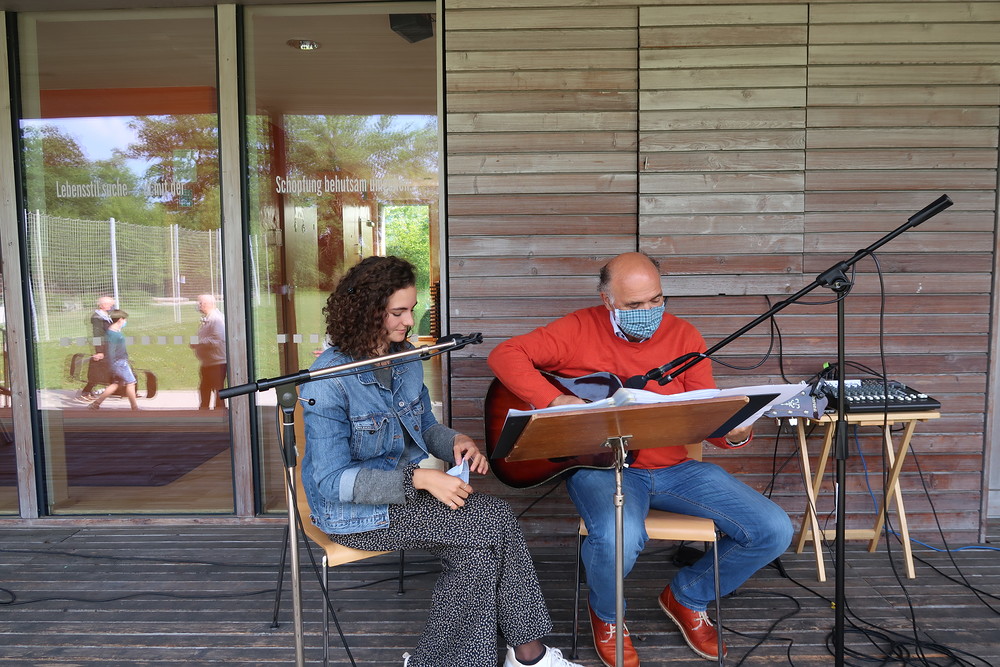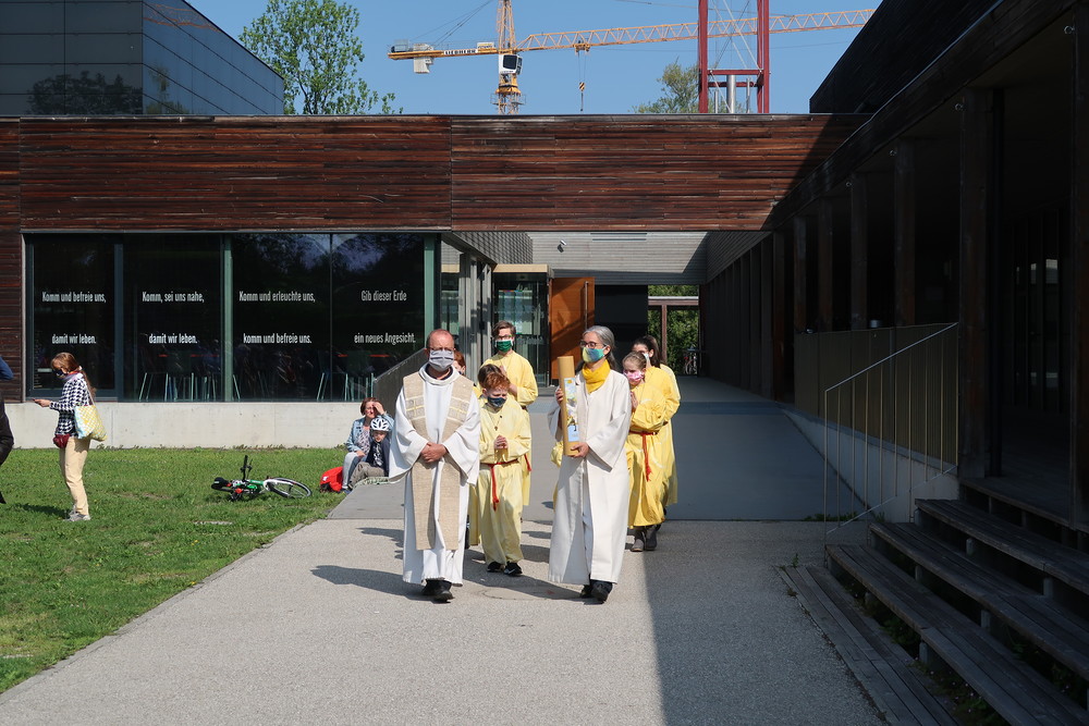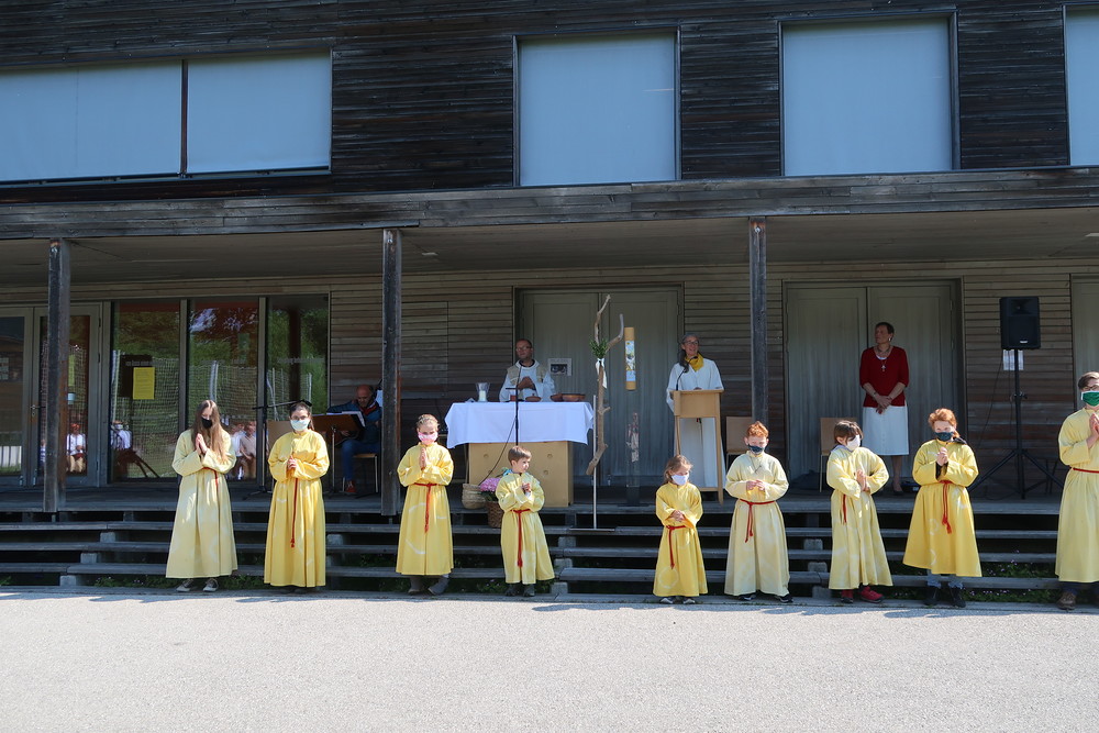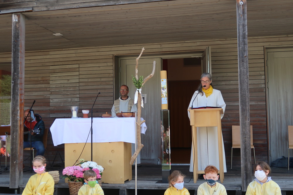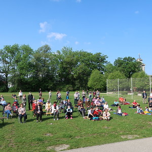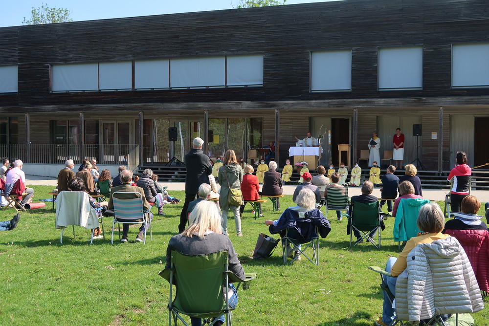 Wir haben unseren ersten - sehnsüchtig erwarteten - Gottesdienst im Freien gefeiert, mit genügend Abstand, frischer Luft und Sonnenschein.