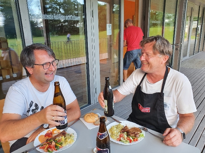 12 Männer trafen sich am 8.7. bei schönstem Sommerwetter zum Grill- und Filmabend auf der Veranda. Nach dem Genuss von Gegrilltem und Salaten – mit Elefantenabstand – gab es mit dem Film “Rebellinnen – leg dich nicht mit ihnen an!” einen skurril-humorvollen Ausklang des Abends.