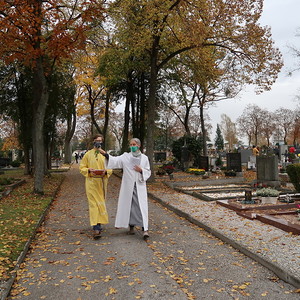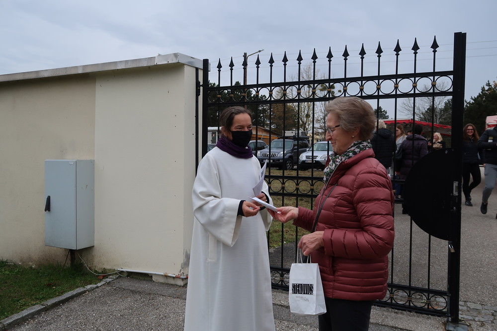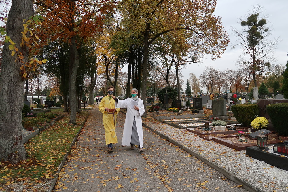 Die Welser Seelsorgerinnen und Seelsorger waren jedoch von 14 bis 15 Uhr bei den Friedhofseingängen ansprechbar, haben ökumenisch gestaltete Texte für das persönliche Gebet am Grab zum Mitnehmen angeboten und auch die Gräber gesegnet.