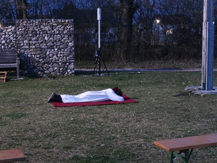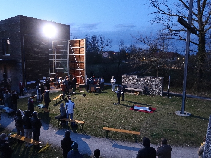 Die Karfreitagsliturgie wurde heuer in unserer Pfarre auch im Freien gefeiert. Mit einer szenischen Darstellung brachte uns Franz Strasser das Leiden und Sterben Jesu nahe.