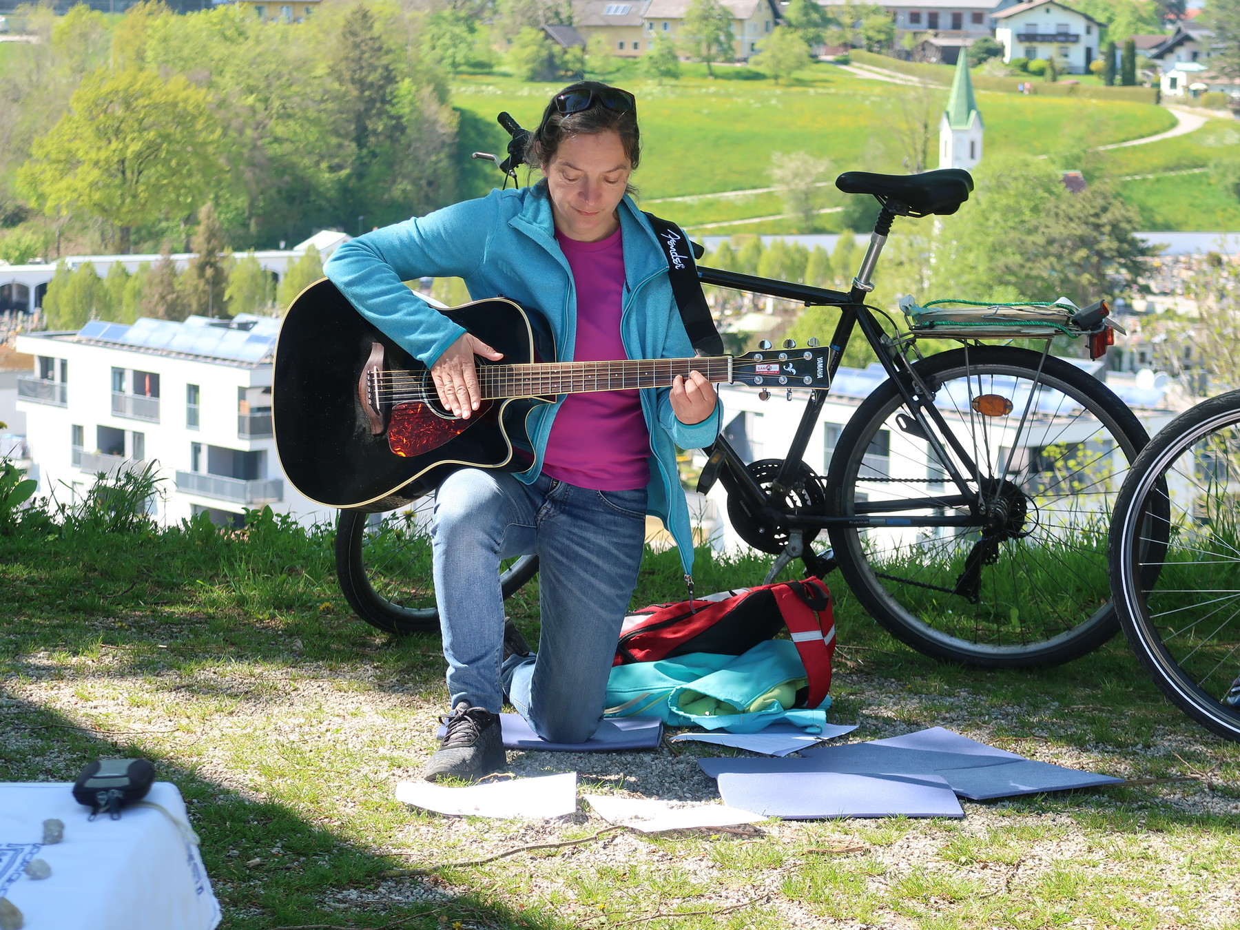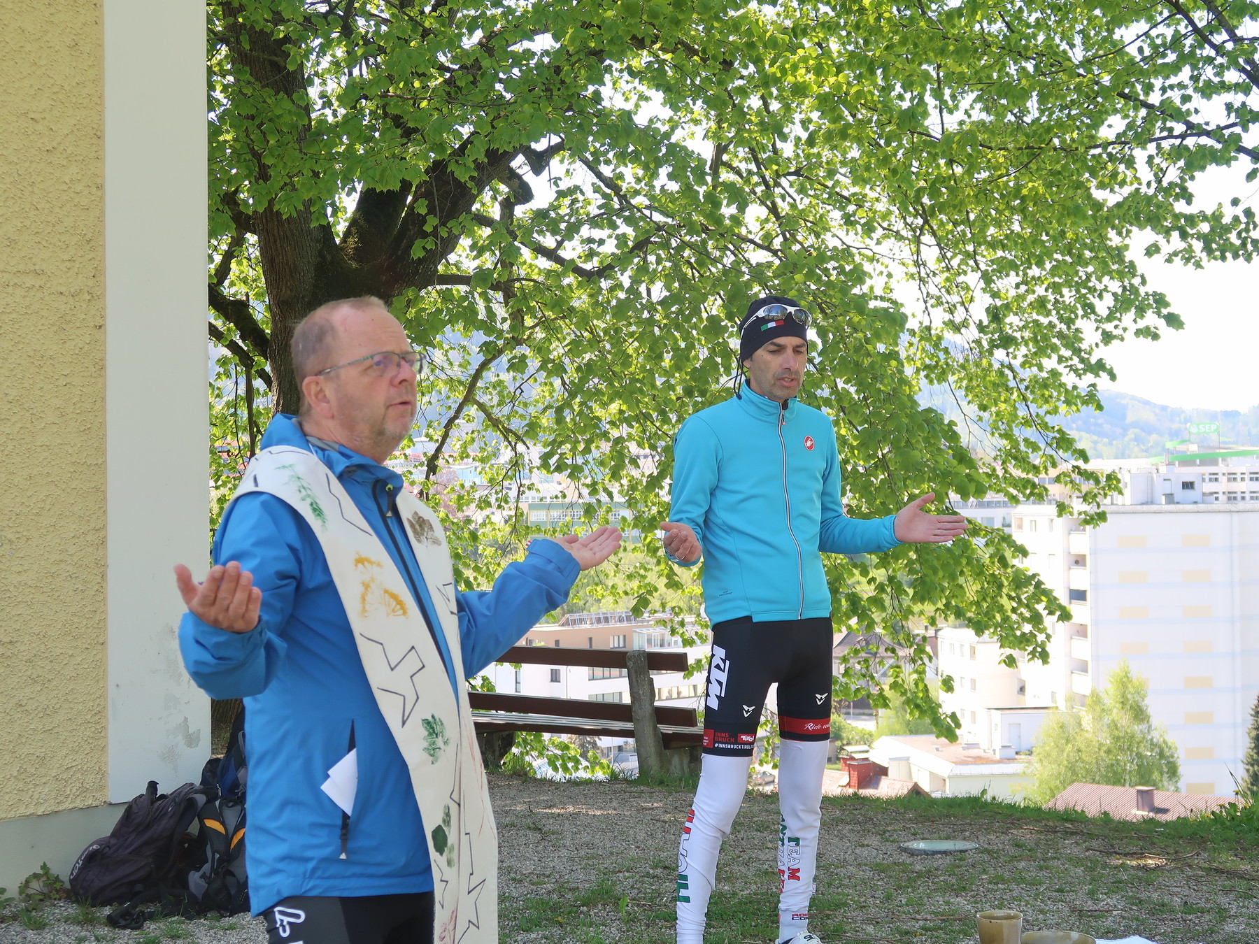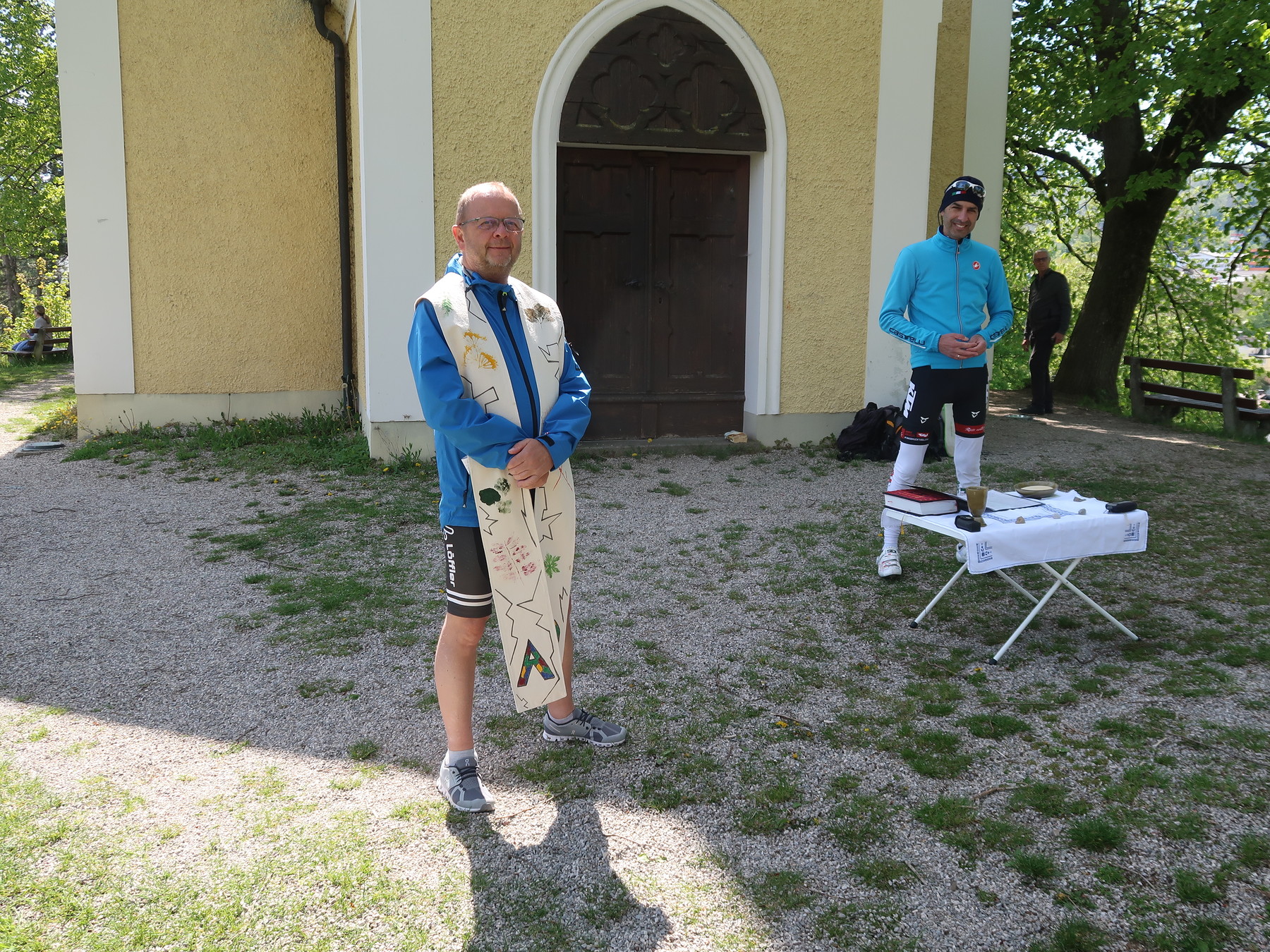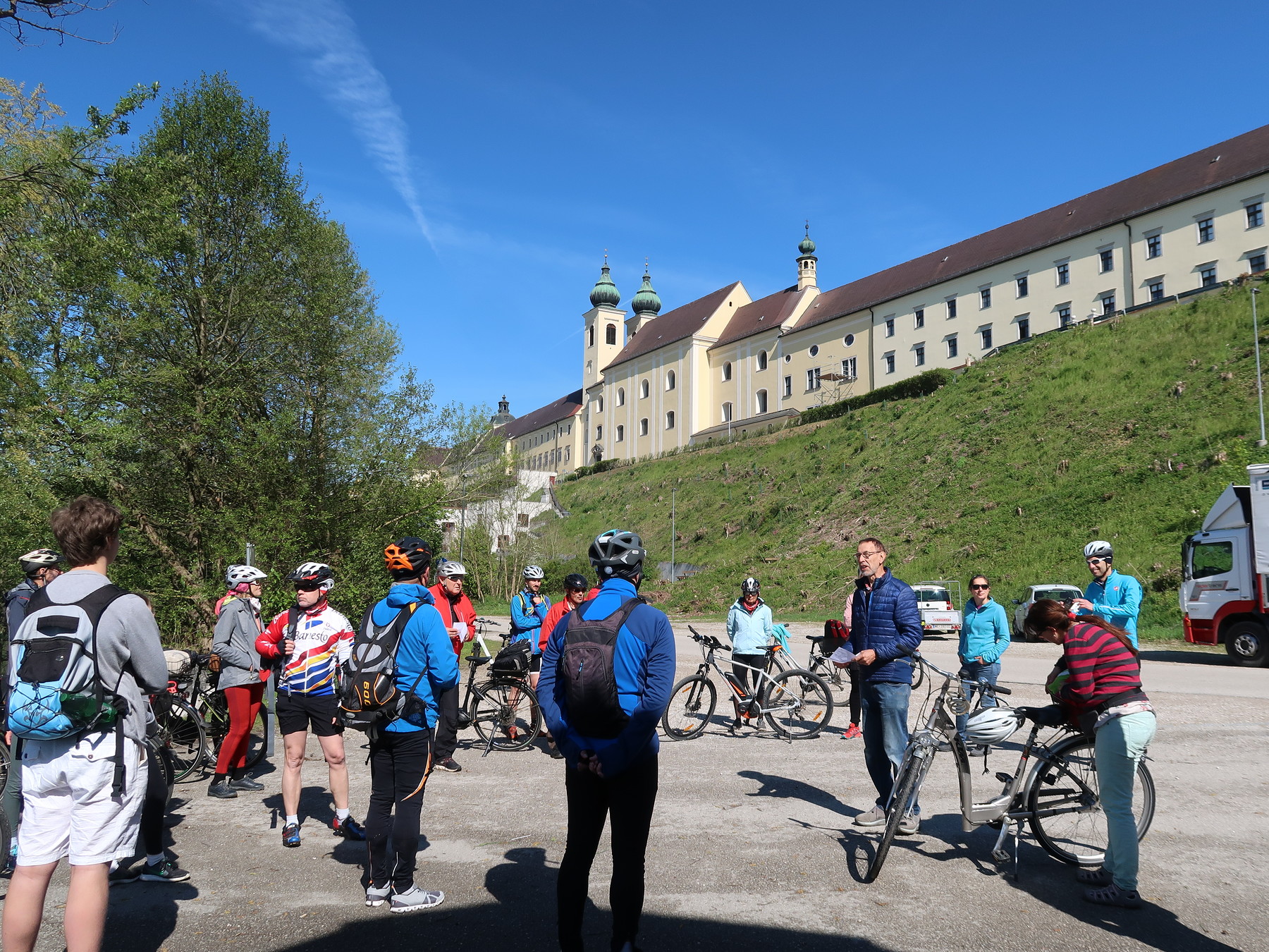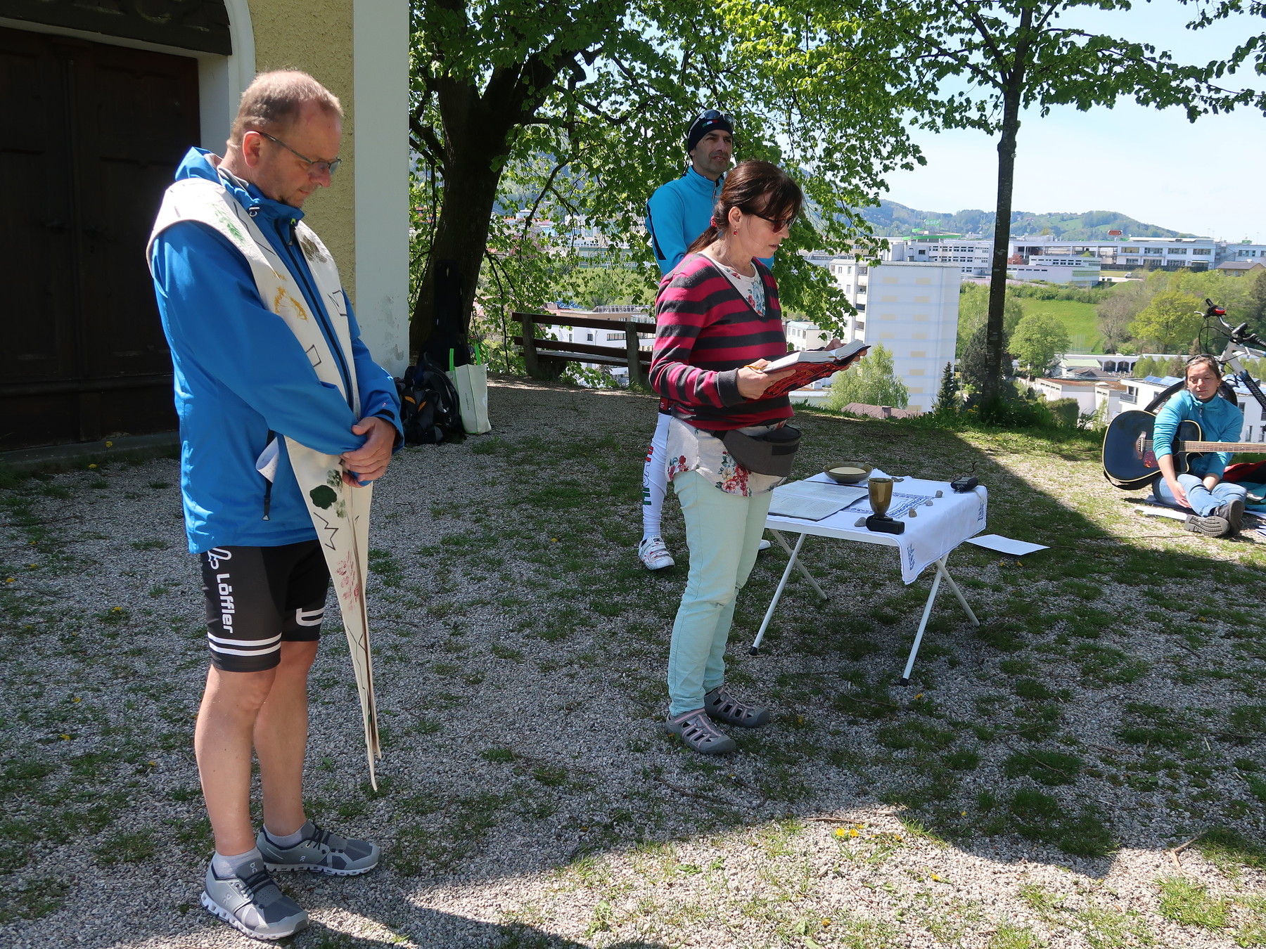 Nach einem Impuls über die Bedeutung des Radpilgerns und einem Gebet fuhren 20 Radfahrer*innen, Junge und Ältere, in gemütlichem Tempo über Lambach, Traunfall, Schlosskapelle Mitterberg über die Marienbrücke nach Gmunden. Bei einigen Stationen haben wir uns auf die Bedeutung des Pilgerns eingestimmt und eingelassen. In Mitterberg legten wir eine Jausenpause ein, um für den letzten Teil der Strecke Energie zu tanken. Nach rund 50 km beendeten wir am Kalvarienberg in Gmunden mit einer Bergmesse das Radpilgern. Zurück gings wieder mit dem Rad, Einige aber auch mit dem Zug oder dem Begleitfahrzeug.