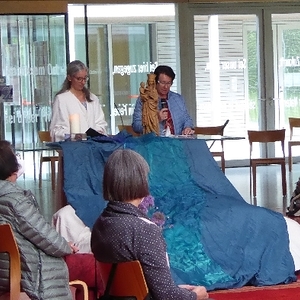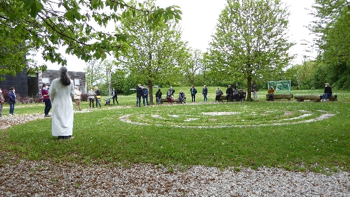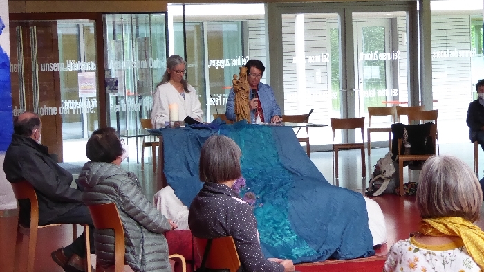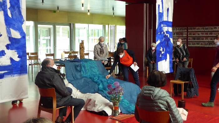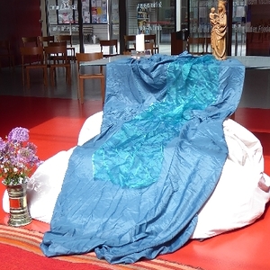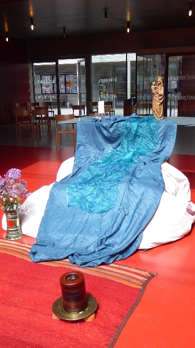 Es wurde der Fluss des Lebens dargestellt und jeder konnte mit einem Glasmugelstein seine Gedanken dem “Lebens“ Fluss übergeben. Maria wurde auch in Form einer schönen Statue in unsere Mitte genommen.