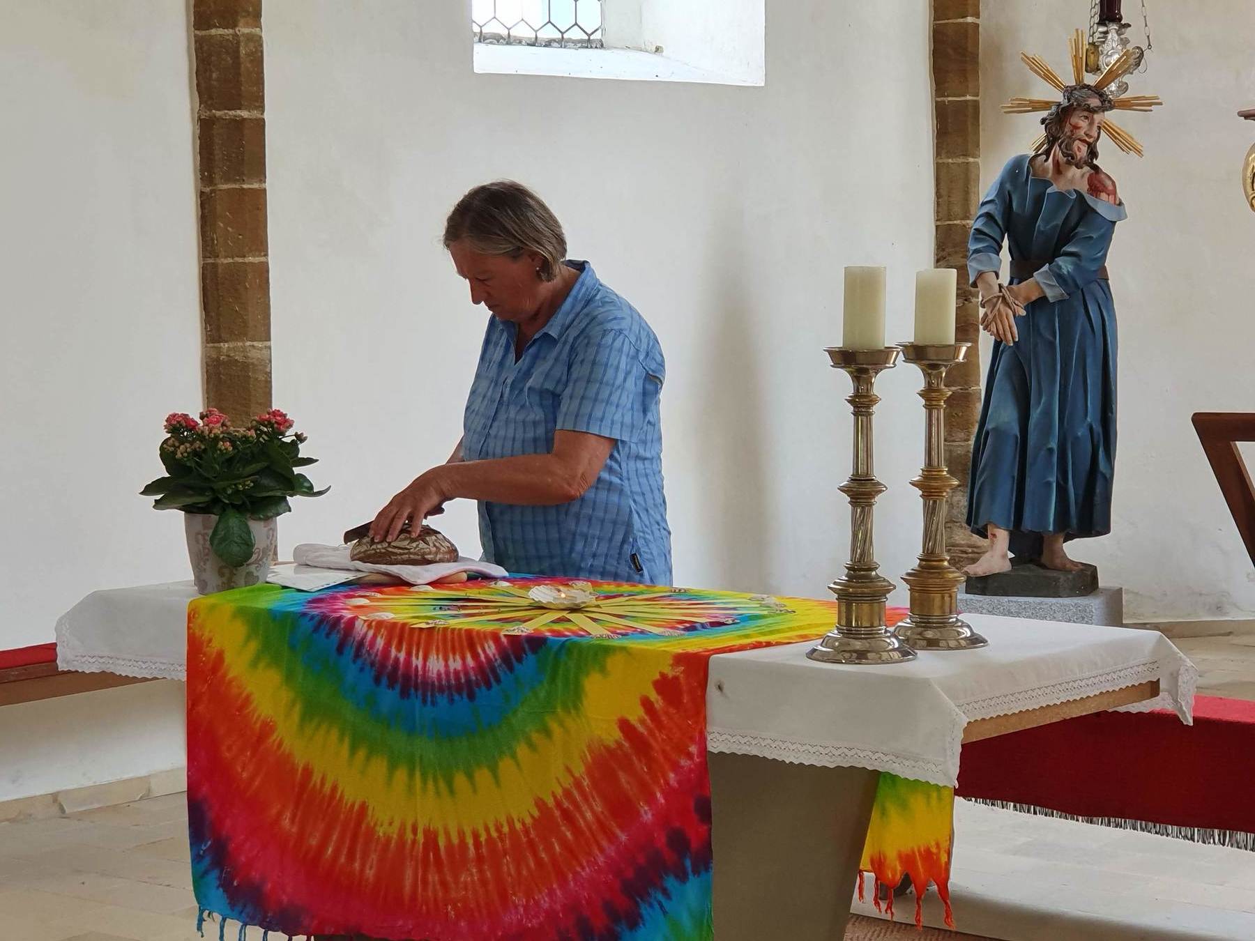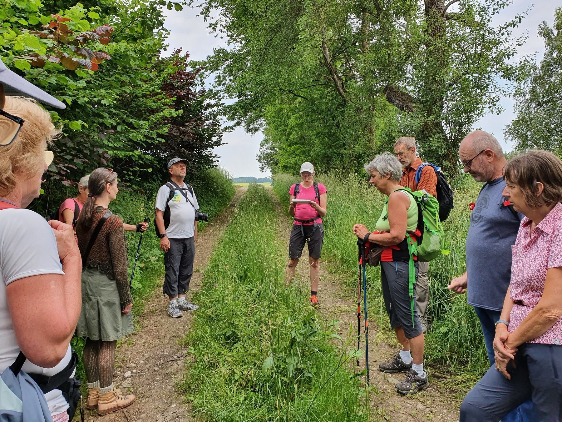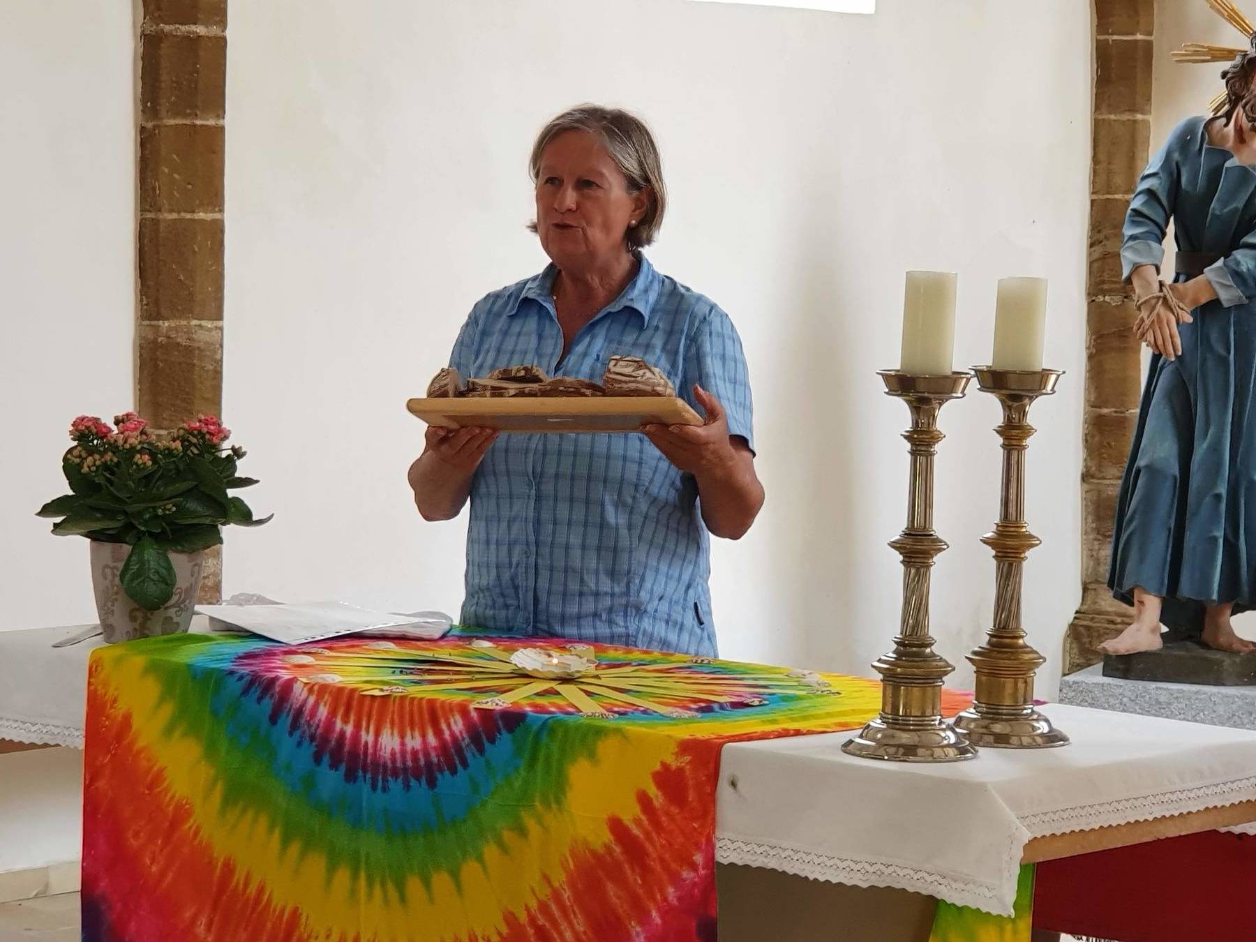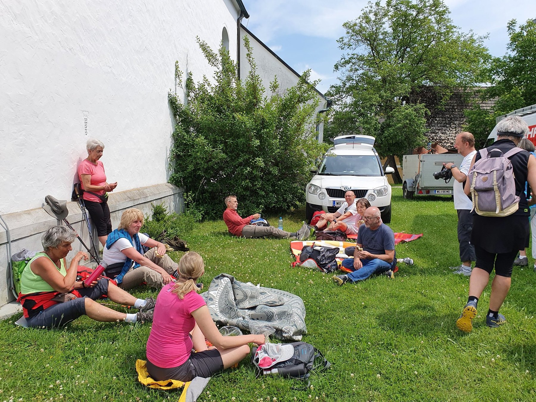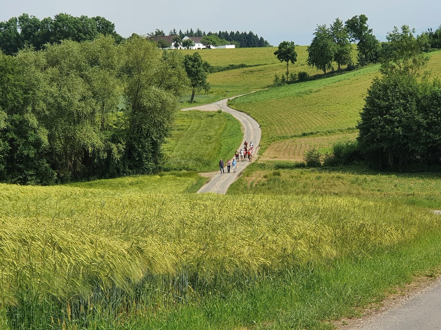.....Vorbei an Marterl, wanderten wir in dieser wunderschönen Landschaft nordwestlich von Wels. Bei den Kapellen entlang des Weges hielten wir inne und hörten passende Bibeltexte. Weiter gings zur „Jakobskirche" in Unterirrach. Diese Filialkirche wurde erstmals 1134 urkundlich erwähnt und wurde von der Familie Schwantaler 1734 barockisiert. Die Jakobsstatue im Hauptaltar zeigt Jakobus mit weitem Mantel, Reisestab, Reisetasche, Wasserflasche und Muschelhut. Nach einer gemeinsamen Andacht in der Kirche und einer Agape im „Grünen“ gings wieder über Fernreith und Oberthan zurück nach St. Franziskus.