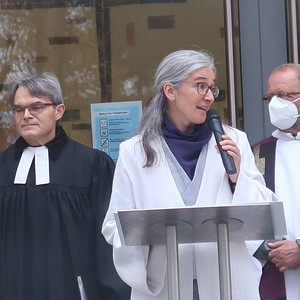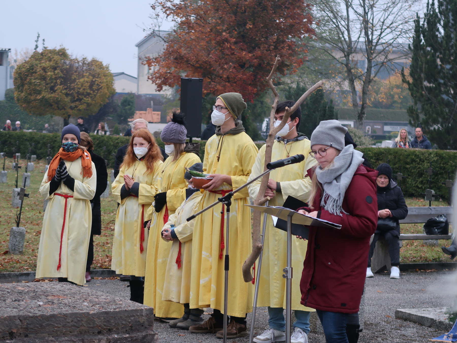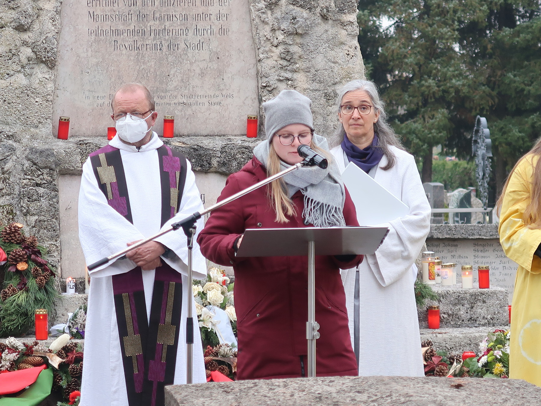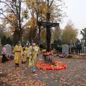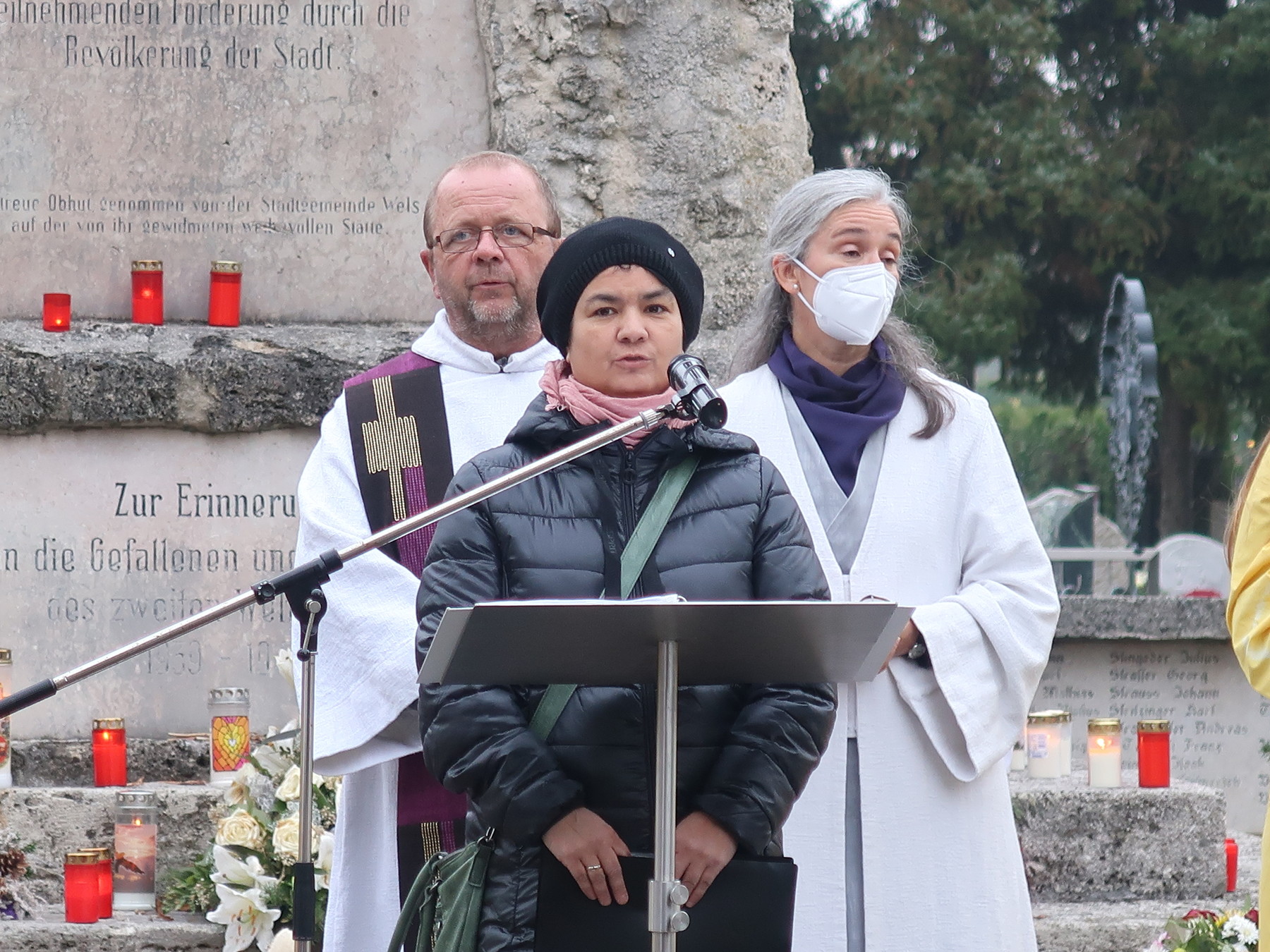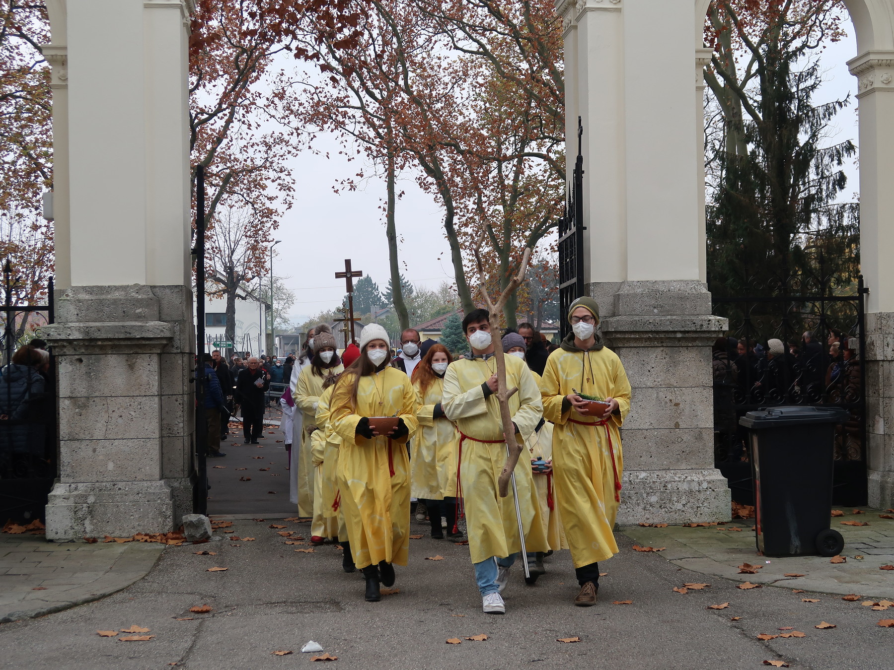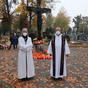 ökumenischen Allerheiligenfeier bei der Aussegnunghalle teil, die von unserer Pfarre gemeinsam mit der evangelischen Pfarre gestaltet wurde. Weiter ging es in einer Prozession zur Gedenkfeier beim Kriegerdenkmal. Nach der Ansprache und gemeinsamen Gebet teilen sich die katholischen Seelsorger*innen der Pfarren auf, und segneten die Gräber.
