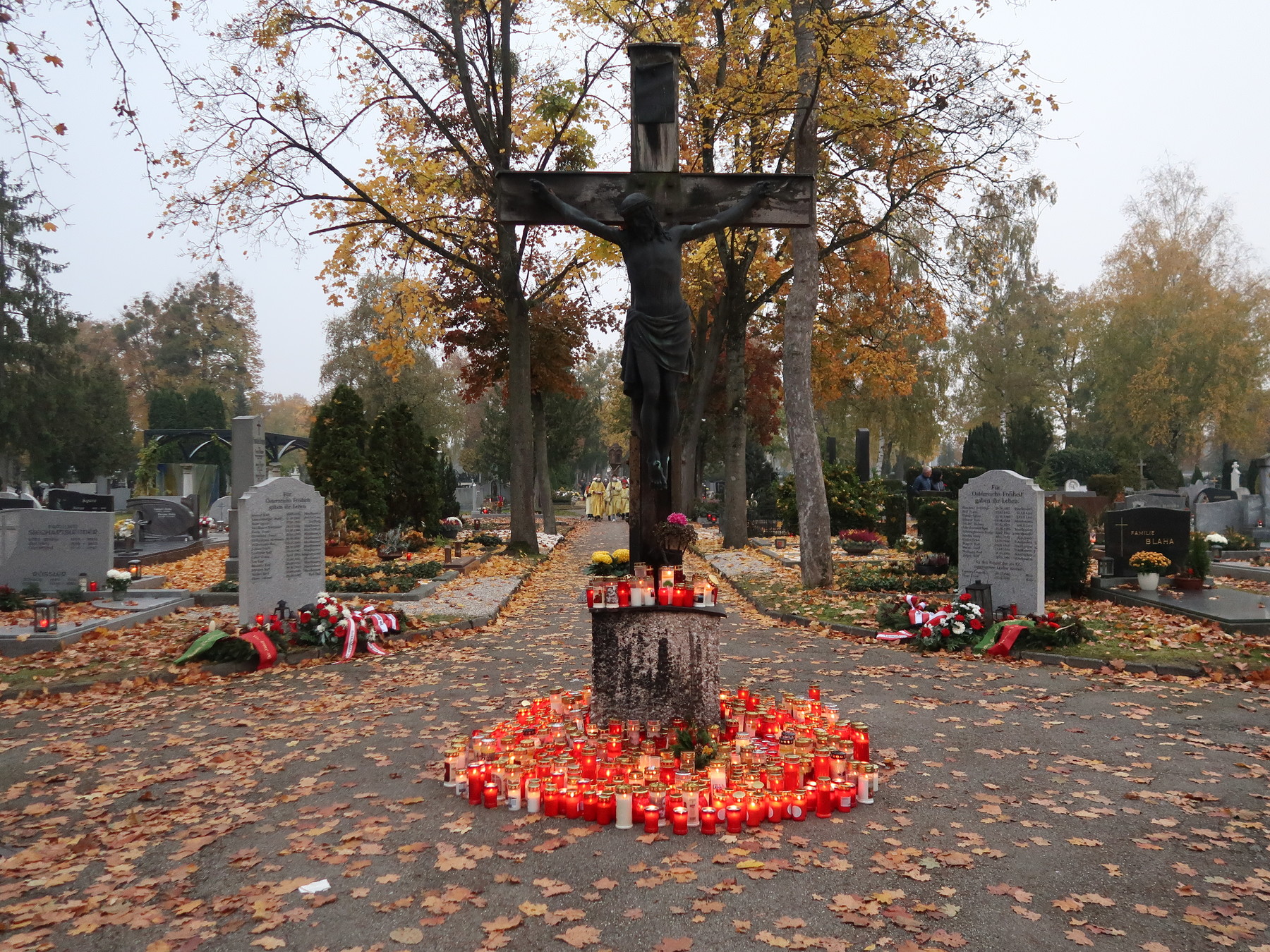 Am Nachmittag des Allerheiligentages besuchten viele Menschen die geschmückten Gräber ihrer Verstorbenen und nahmen an der