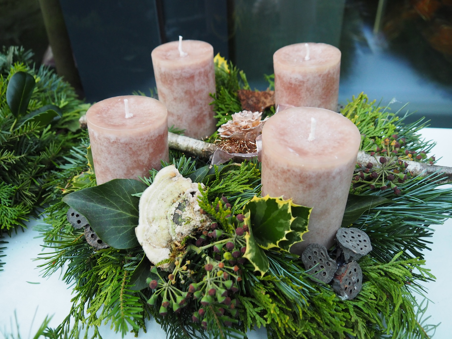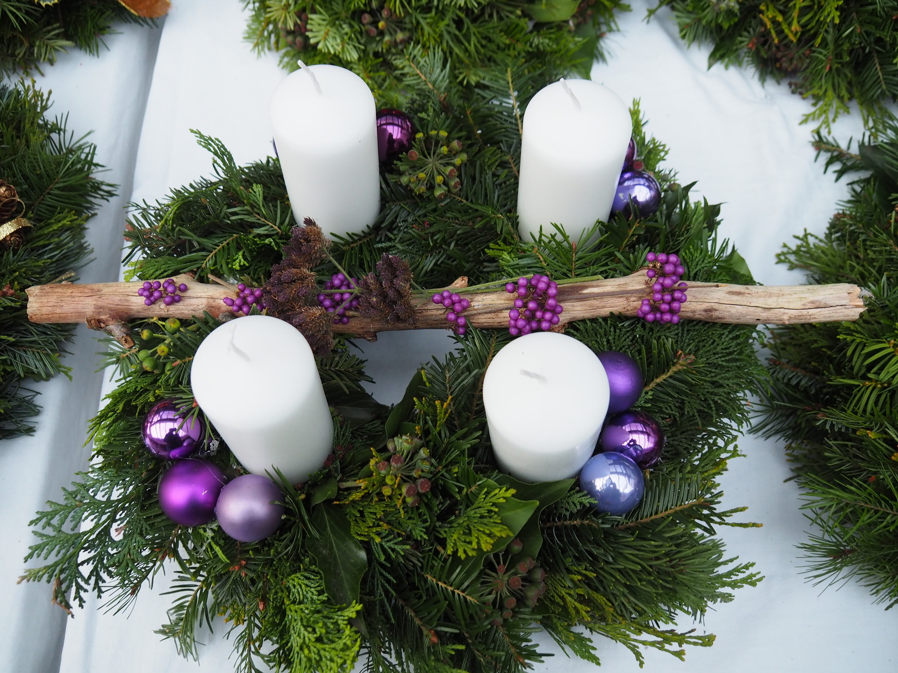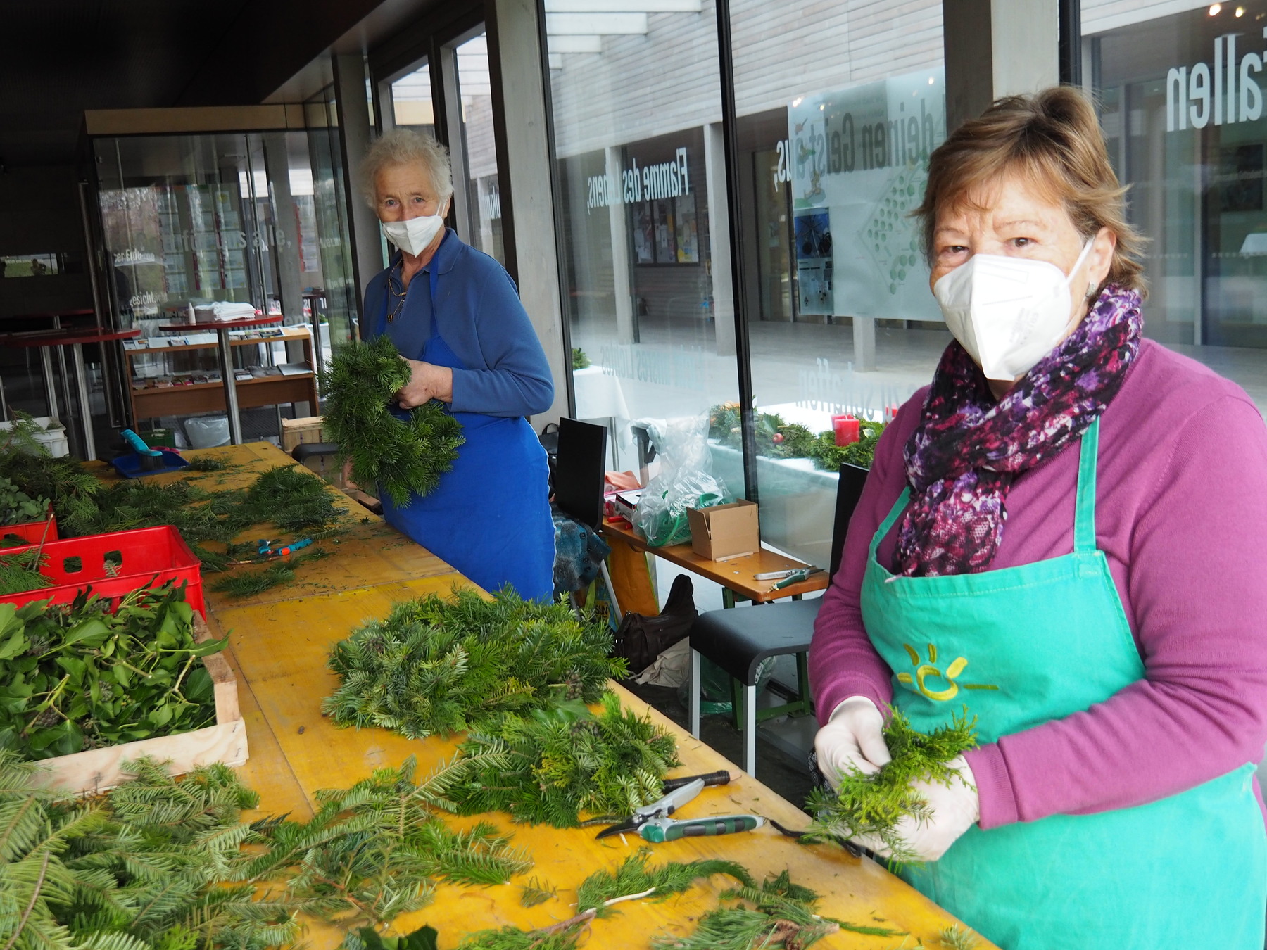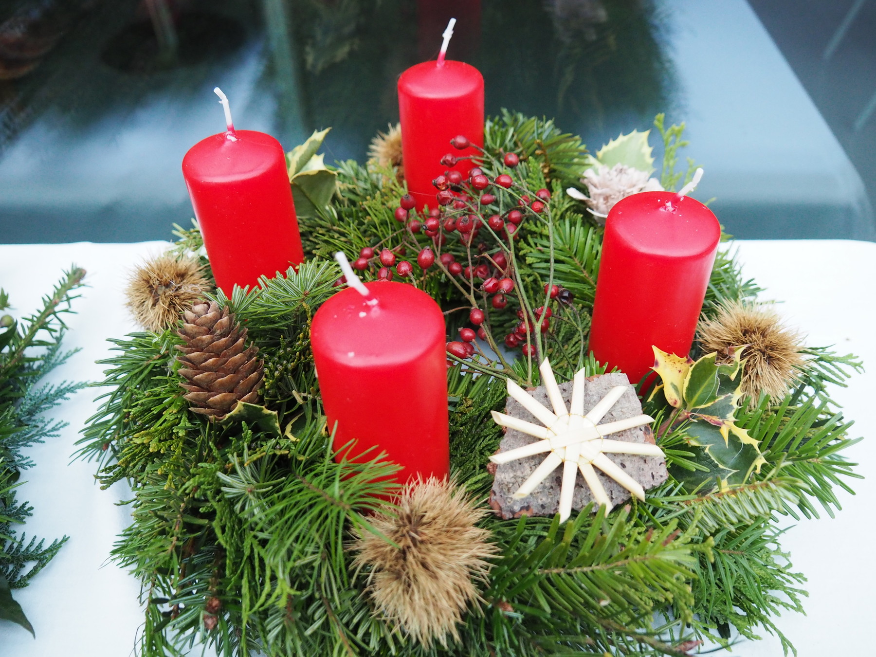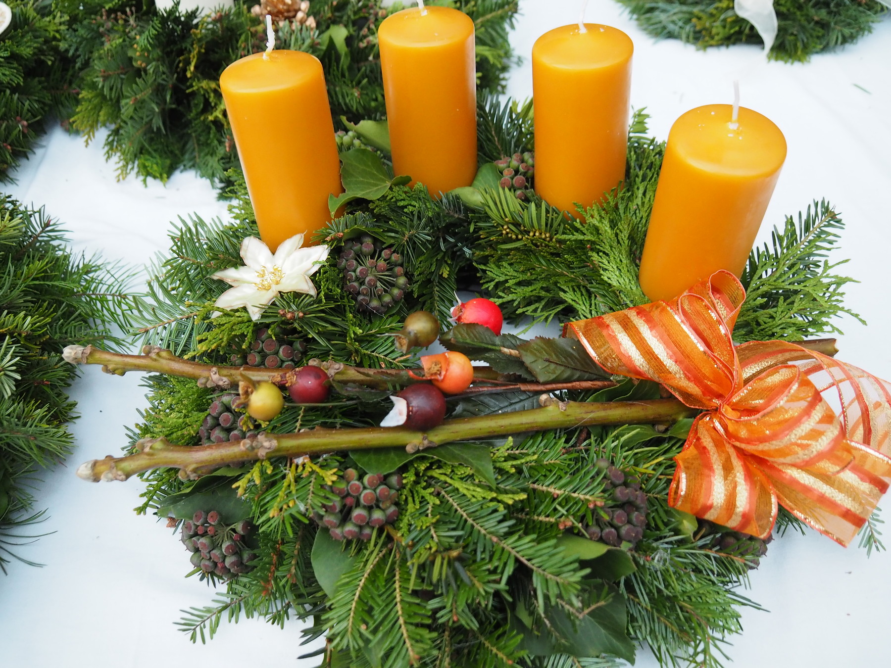 Wunderschöne Adventkränze, die uns etwas Natur, Farbe und Licht in dieser dunklen Jahreszeit ins Haus bringen, wurden von fleißigen Frauen gebunden.