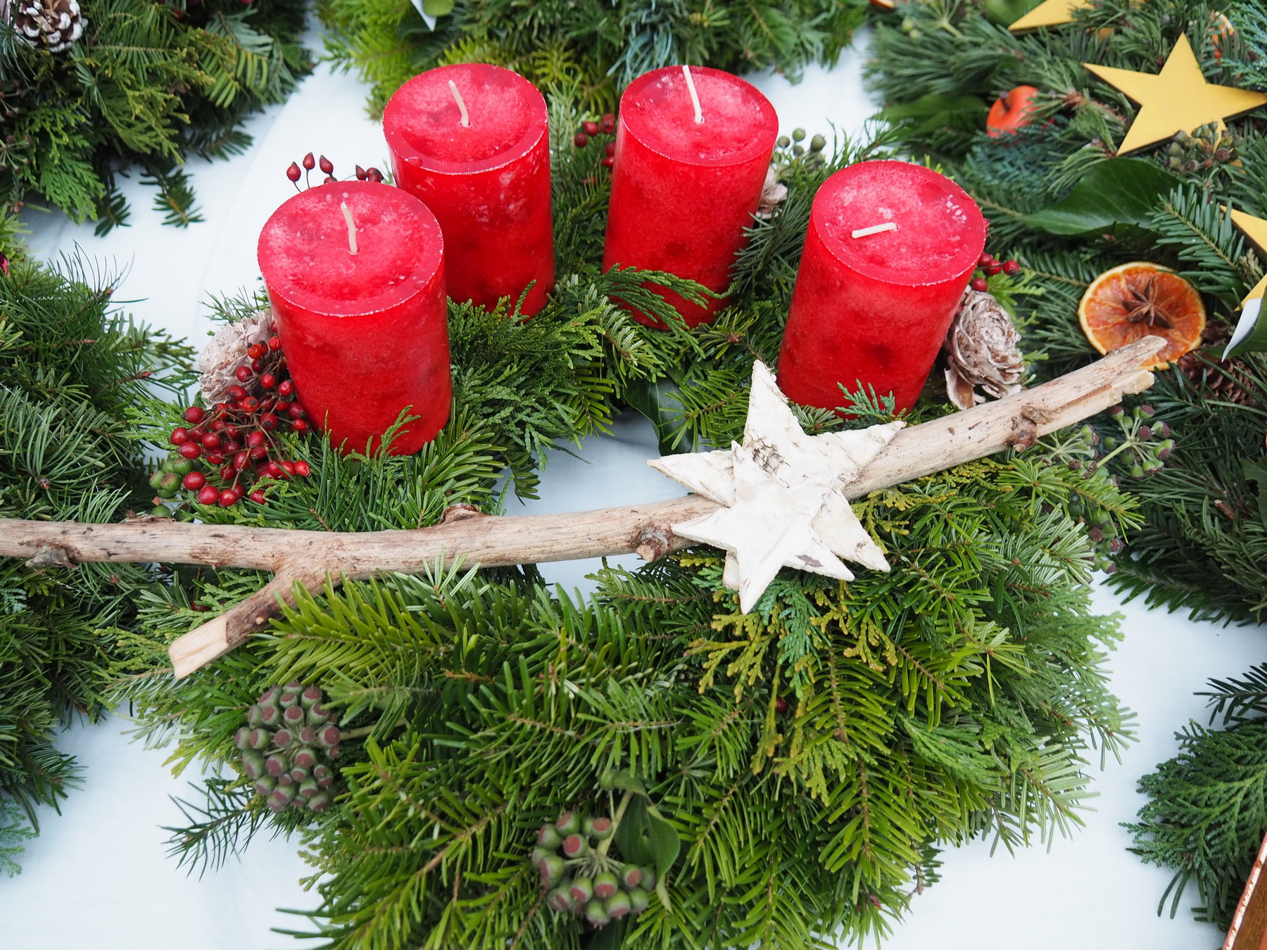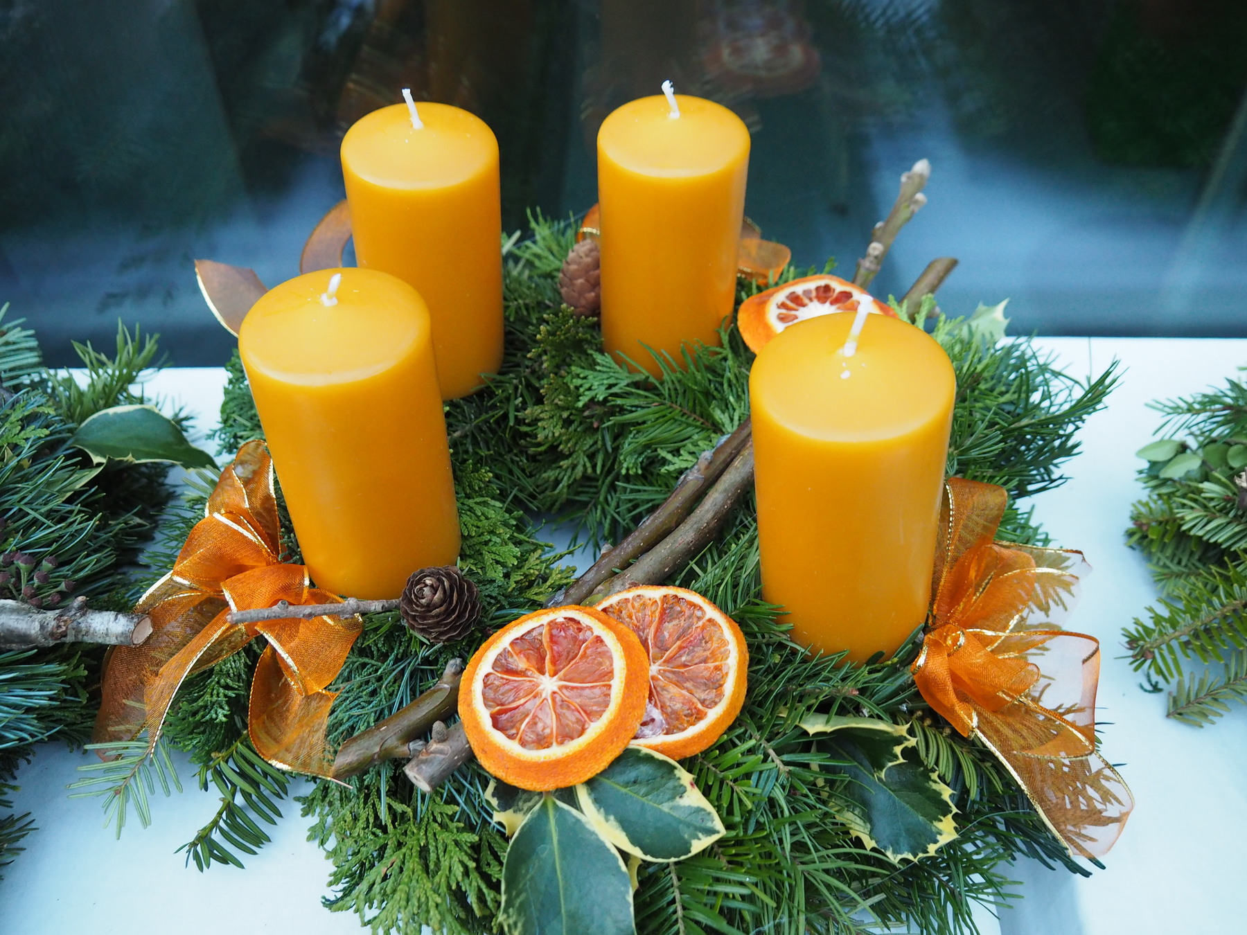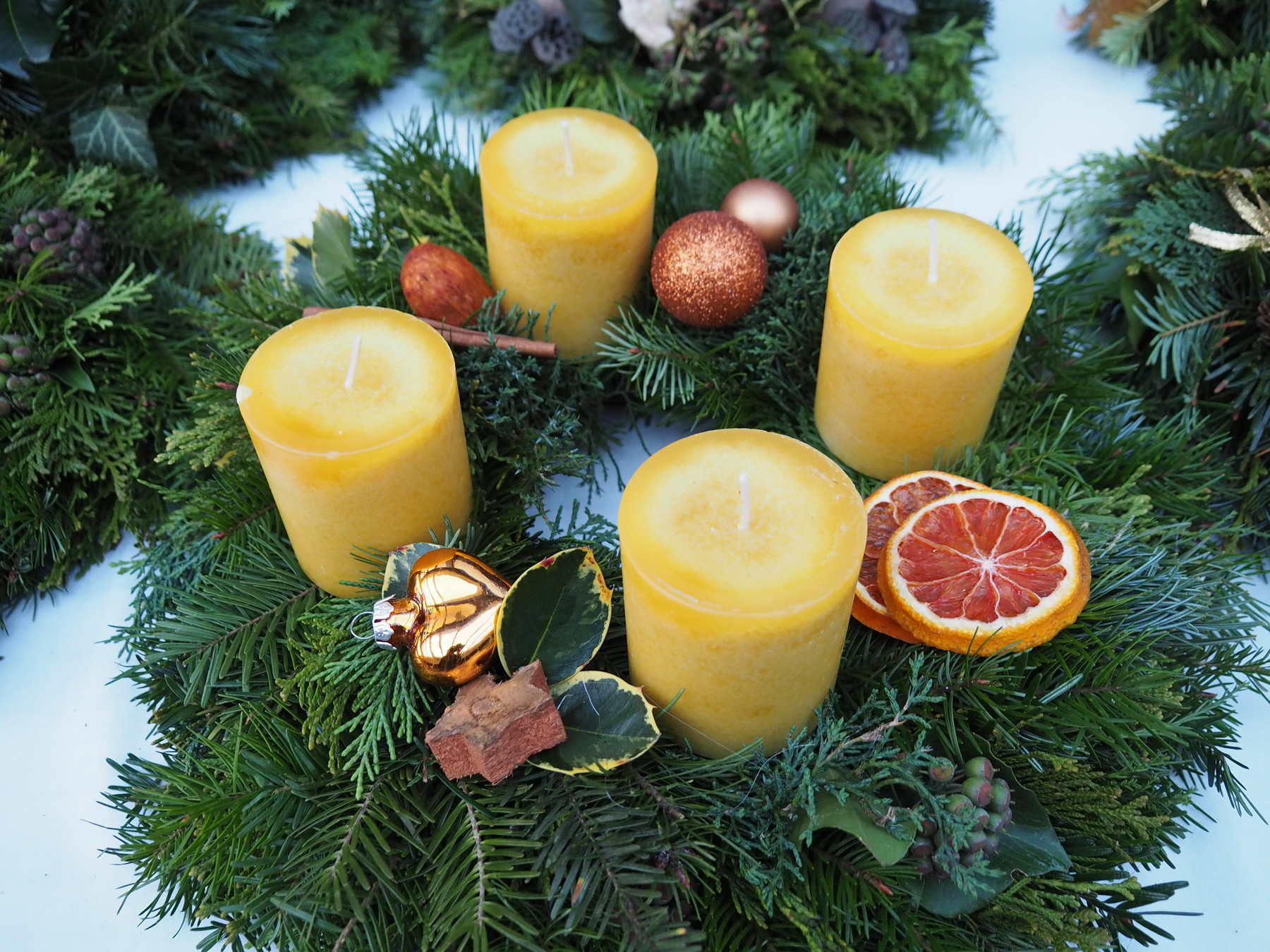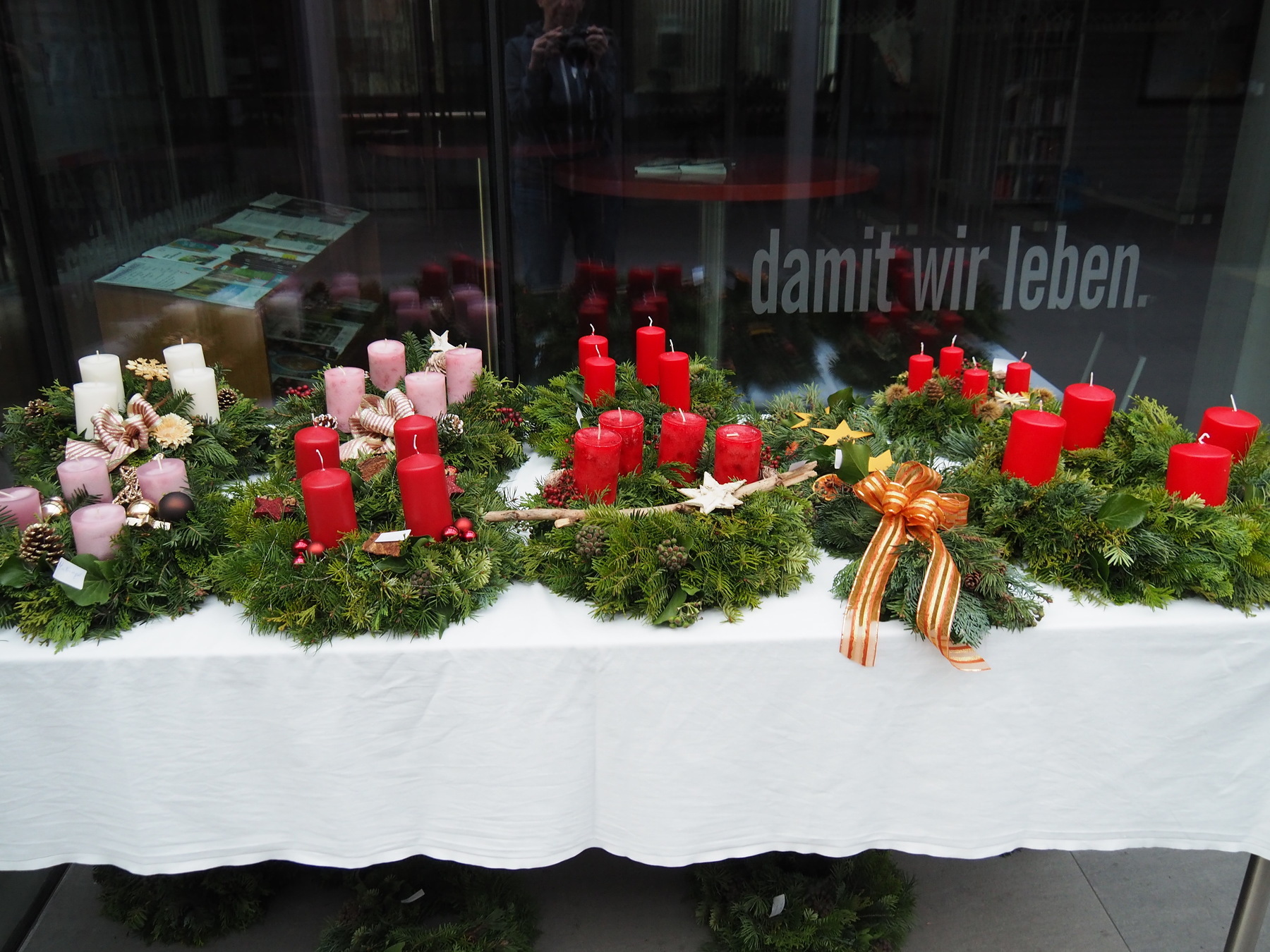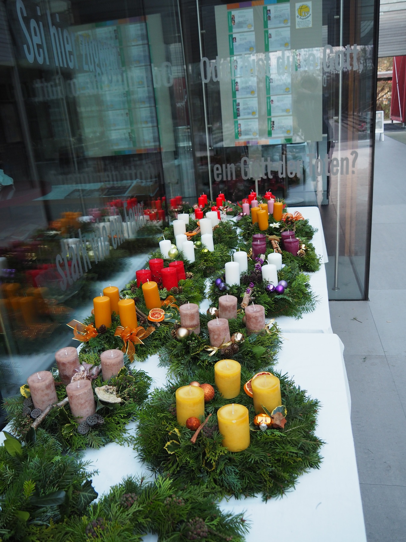 Wunderschöne Adventkränze, die uns etwas Natur, Farbe und Licht in dieser dunklen Jahreszeit ins Haus bringen, wurden von fleißigen Frauen gebunden.