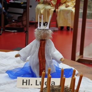 Die Hl. Luzia mit ihrem Kerzenkranz hat am 4. Adventsonntag mit uns Gottesdienst gefeiert und von ihrem Leben erzählt. Ihr Namenstag ist am 13. Dezember.