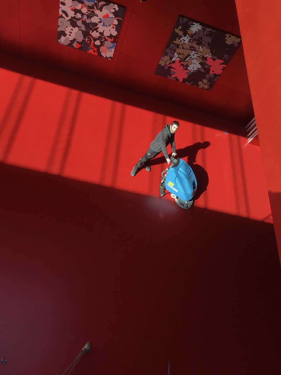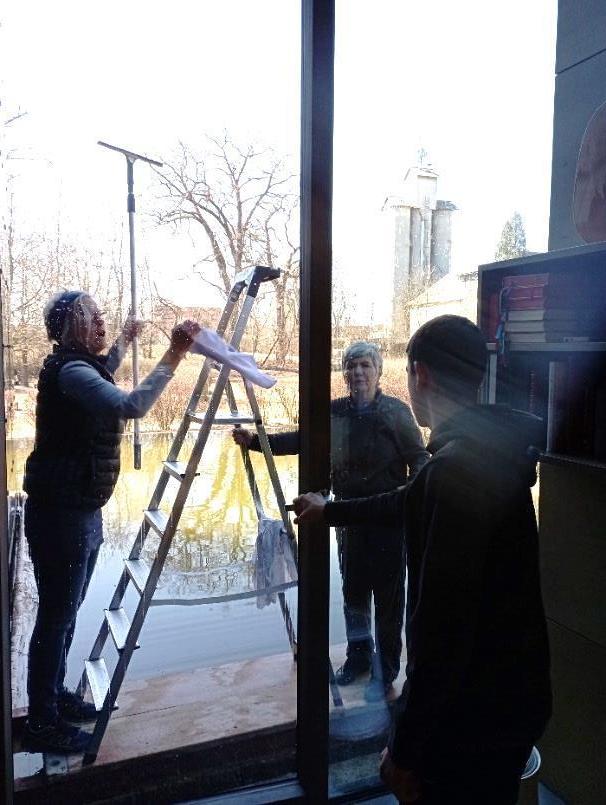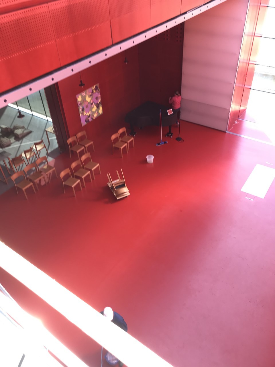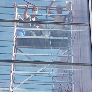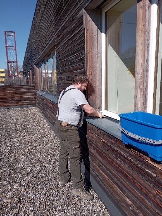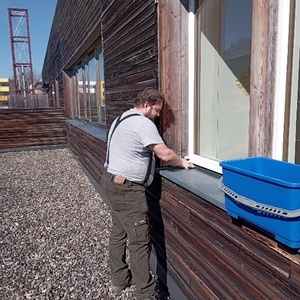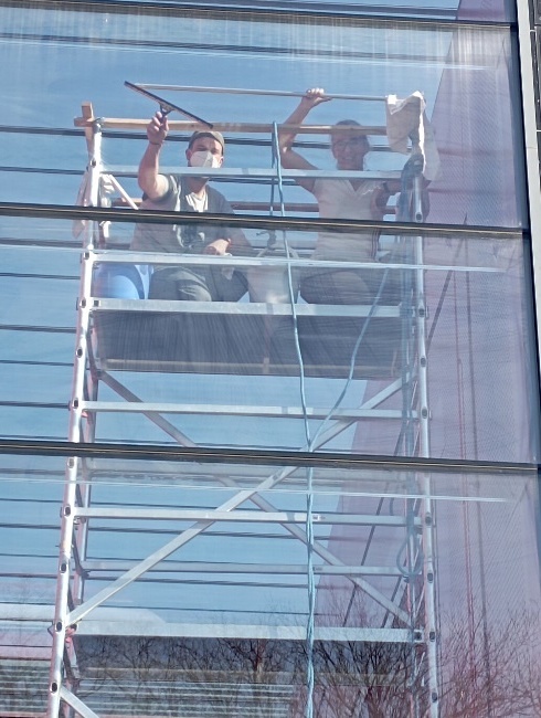 Vom Fensterputzen am Gerüst, Wartung der Beschattung, Reinigung aller Keller– und Technikräume, Reinigung aller Verteiler und Steuerschränke,Fensterreinigung an besonders schwer zugänglichen Stellen über dem Wasser, bis zur Reinigung der Abflußrinnen und Kellerschächte wurde von 8:00 bis 15:00 die Kirche wieder auf Hochglanz gebracht.