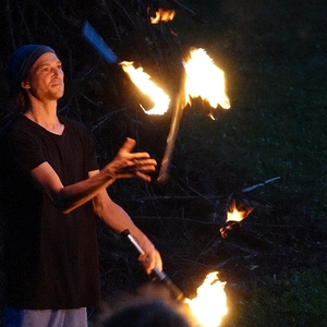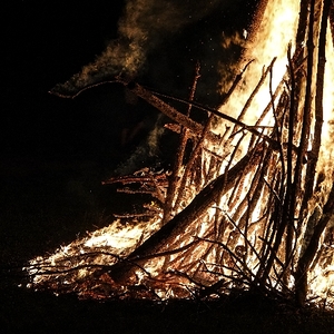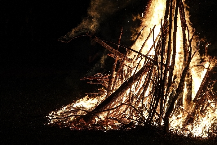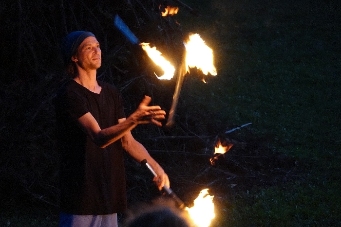 Das Feuer wurde durch einen Feuerkünstler, begleitet von der Trommlergruppe, spektakulär entfacht und spendete mit seiner Glut noch einige Stunden Wärme für die zahlreichen Besucher.