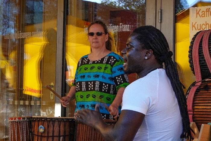 Endlich wieder einmal konnten wir unser Franziskus-Feuer entfachen. Viele Menschen aller Altersgruppen ließen sich das nicht entgehen. Für die Kinder gab es viele Spiele und Zielspritzen mit der Feuerwehr. Die Musik „Paar Excellence“ lud zum Tanzen und Mitsingen ein und trug wesentlich zusammen mit der Trommelgruppe „Mansake Percussion" zur guten Stimmung bei.