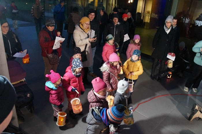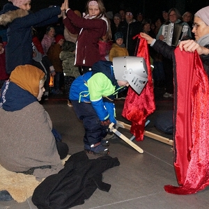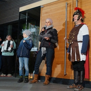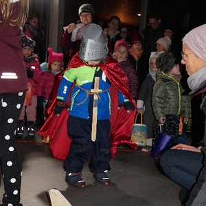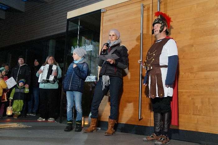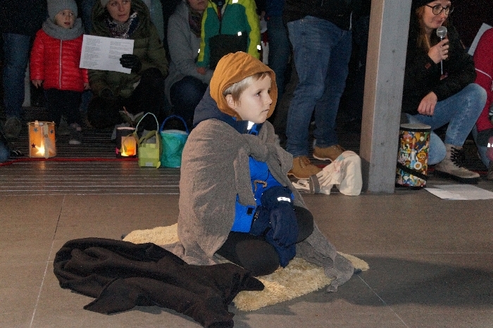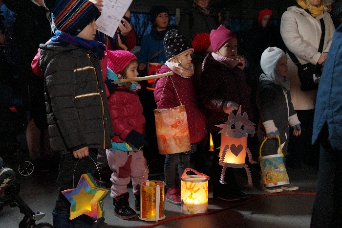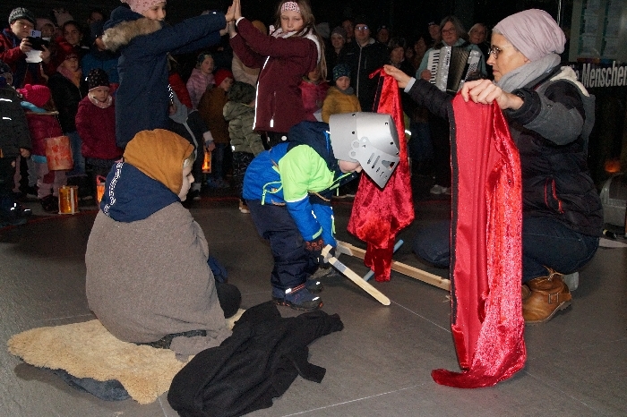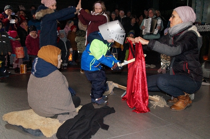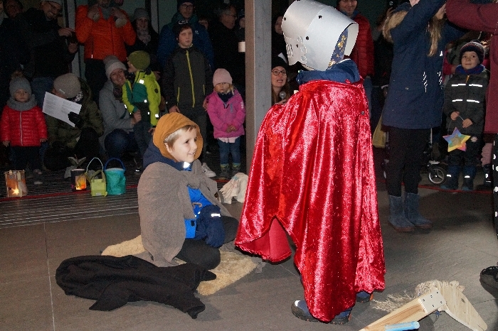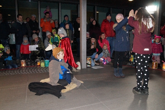 Gespannt schauten sie der Darstellung der Martinslegende zu, die mit einer gemeinsamen Begrüßung des „kleinen“ und „ großen“ Martins endete.