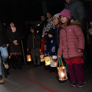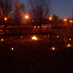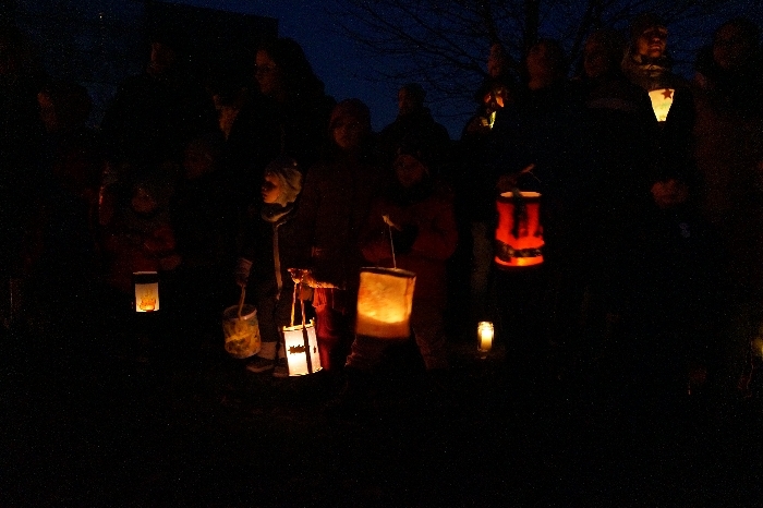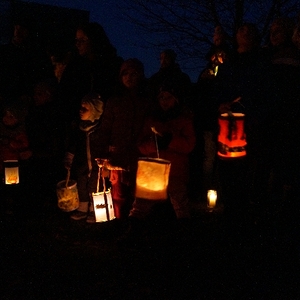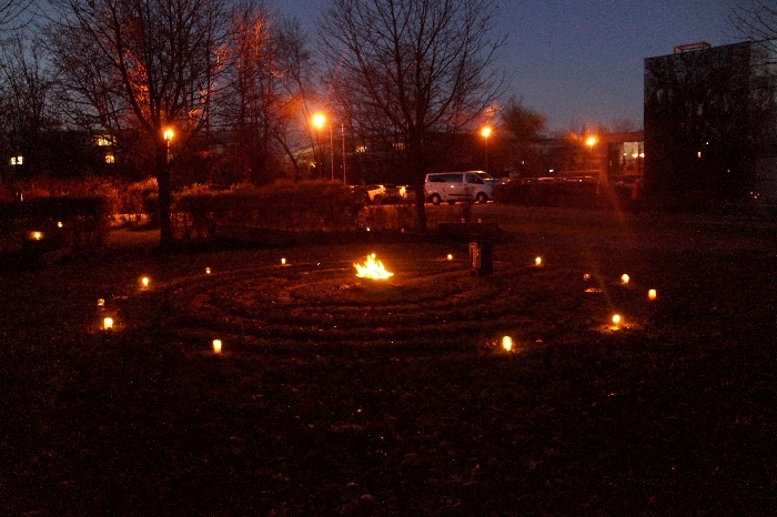 Unter musikalischer Unterstützung machten wir dann mit vielen leuchtenden Laternen einen Umzug bis zum Labyrinth.