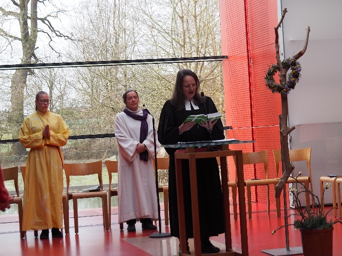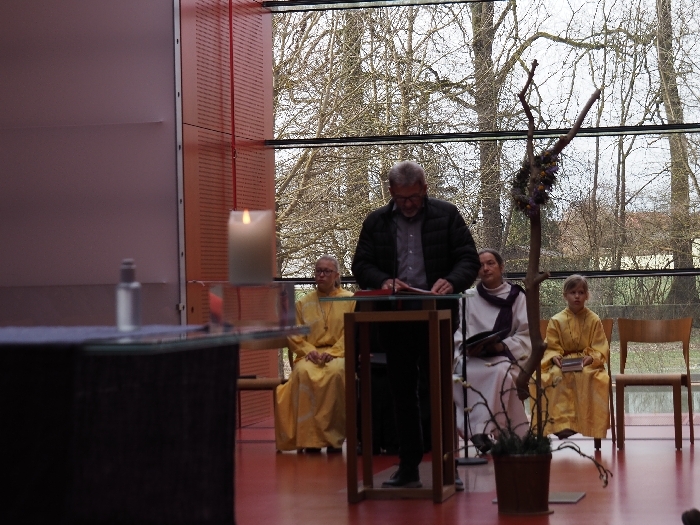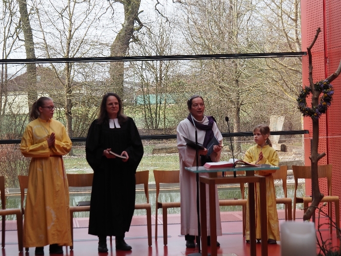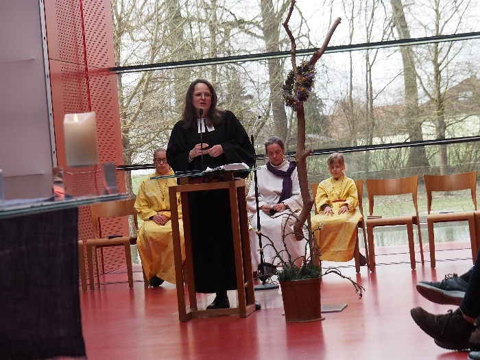 Nicht nur in den Texten des Gottesdienstes und in der Predigt von Pfarrerin Elizabeth Morgan-B. machten wir uns auf zu den Quellen, sondern auch in der Zeichenhandlung, die zum Taufbrunnen führte. "Gott, die Quelle des Lebens, breche auf in dir"