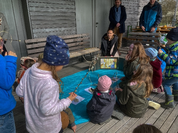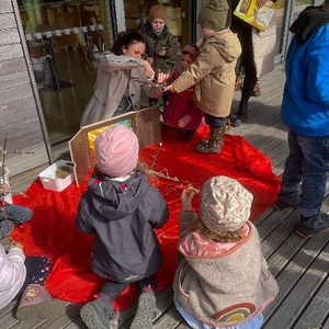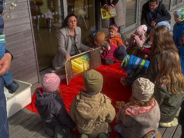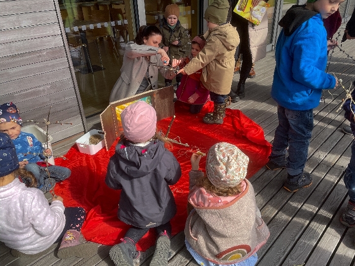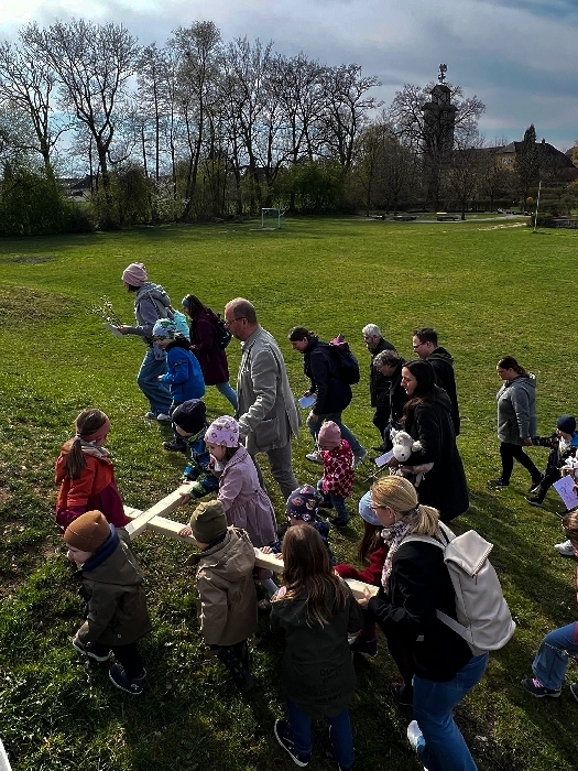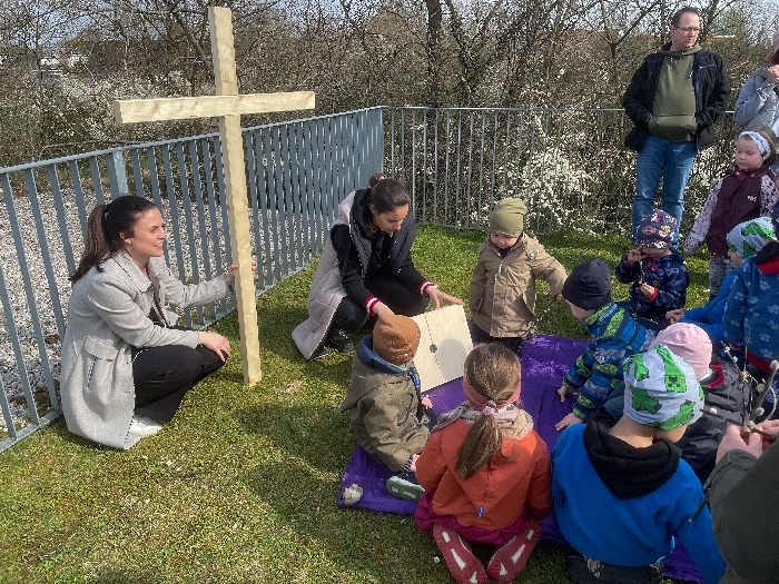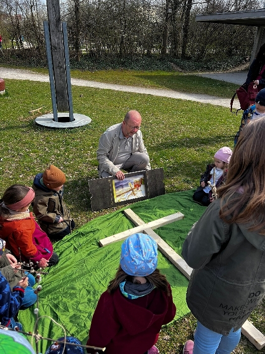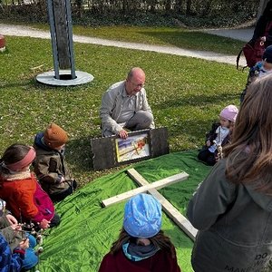 Am Karfreitag wartete auf die Kinder ein Kreuzweg mit verschiedenen Stationen zum Mitmachen. Es wurde gesungen, gekostet, gerochen, gebastelt und gefühlt - mit allen Sinnen waren knapp 30 Kinder mit ihren Familien mit großer Aufmerksamkeit und Freude dabei. Um den Leidensweg Jesu noch anschaulicher zu gestalten, wurde die Geschichte begleitet vom Kamishibai-Theater, das die Bilder dazu zeigte. Bei der letzten Station konnten die Kinder schließlich eine kleine Osterkerze basteln und verzieren, die dann am Ostersonntag entzündet wurde.