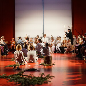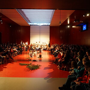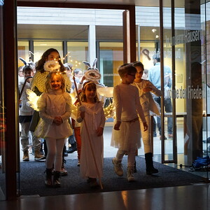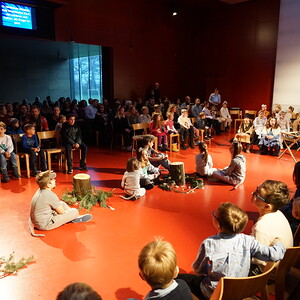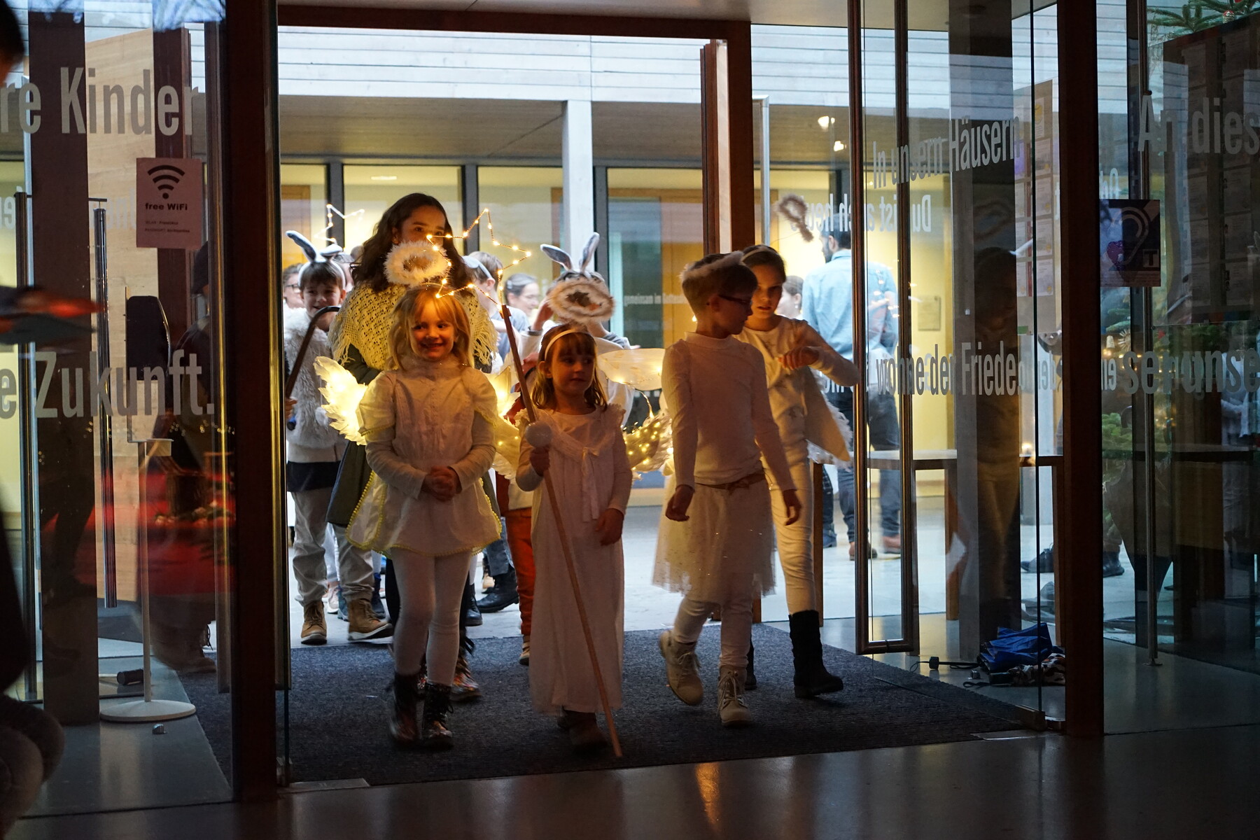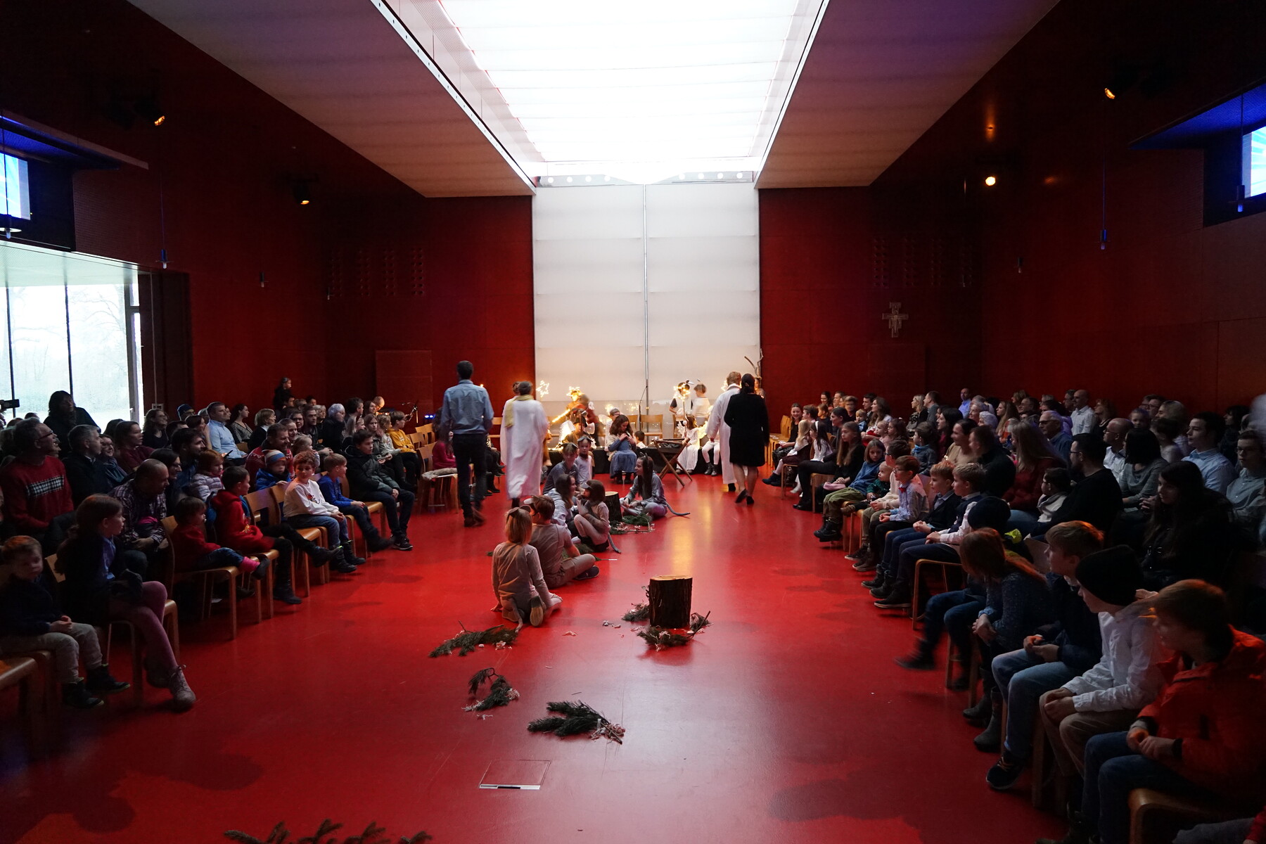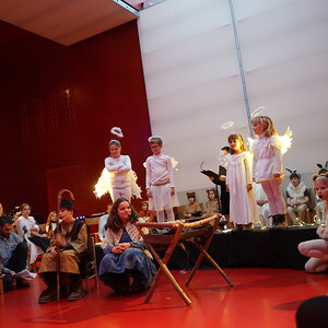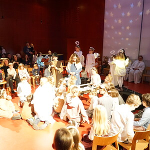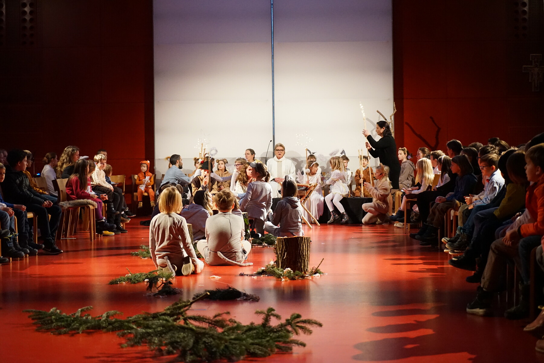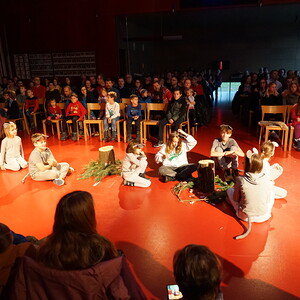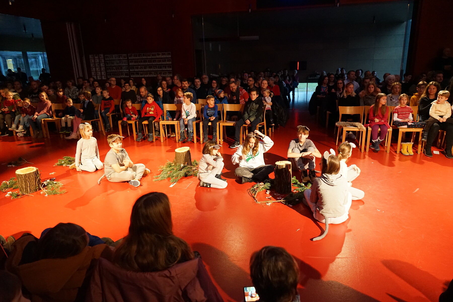 25 Kinder präsentierten die Geschichte von Frederik, einer Maus, die die Not von Maria und Josef im kalten Stall sieht und sofort weiß, dass Hilfe nötig ist. Frederik trommelt die Tiere des Waldes zusammen und gemeinsam machen sie die Geburt des Kindes zu einem Fest der Freude. Ein großes Danke an alle Schauspieler!