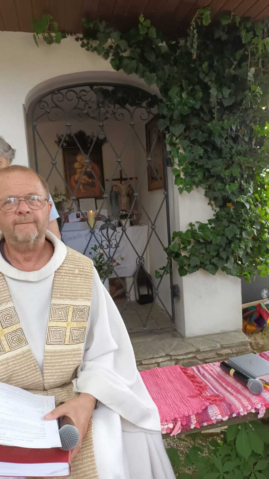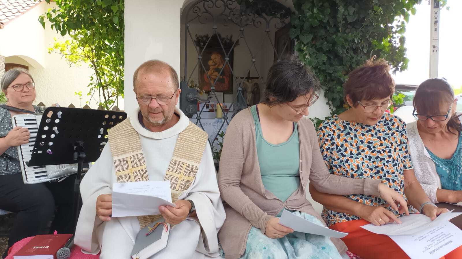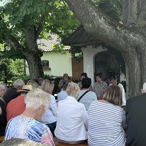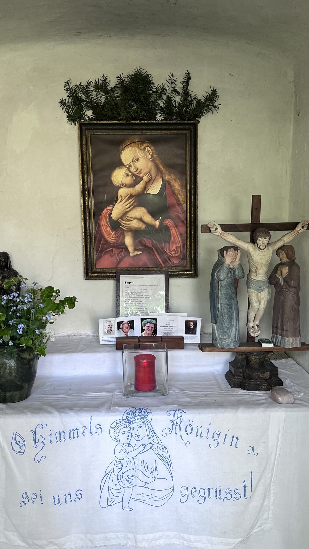 Eine sehr stimmige Feier war unsere heurige Mainandacht bei der „Kirchweger Kapelle“ in Wimpassing. Diese Kapelle wurde schon 1904 errichtet und immer wieder liebevoll restauriert. Ein perfekter Ort für unsere Maiandacht. Unter einem schattigen Kastanienbaum war Platz für alle Besucher, perfekt auch noch mit Bänken ausgestattet.