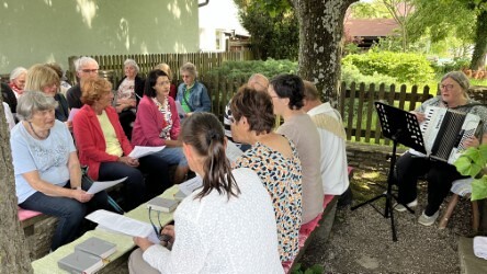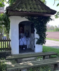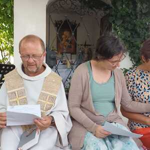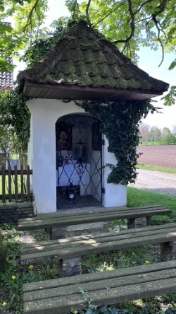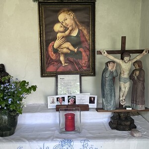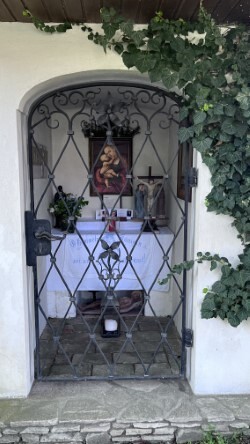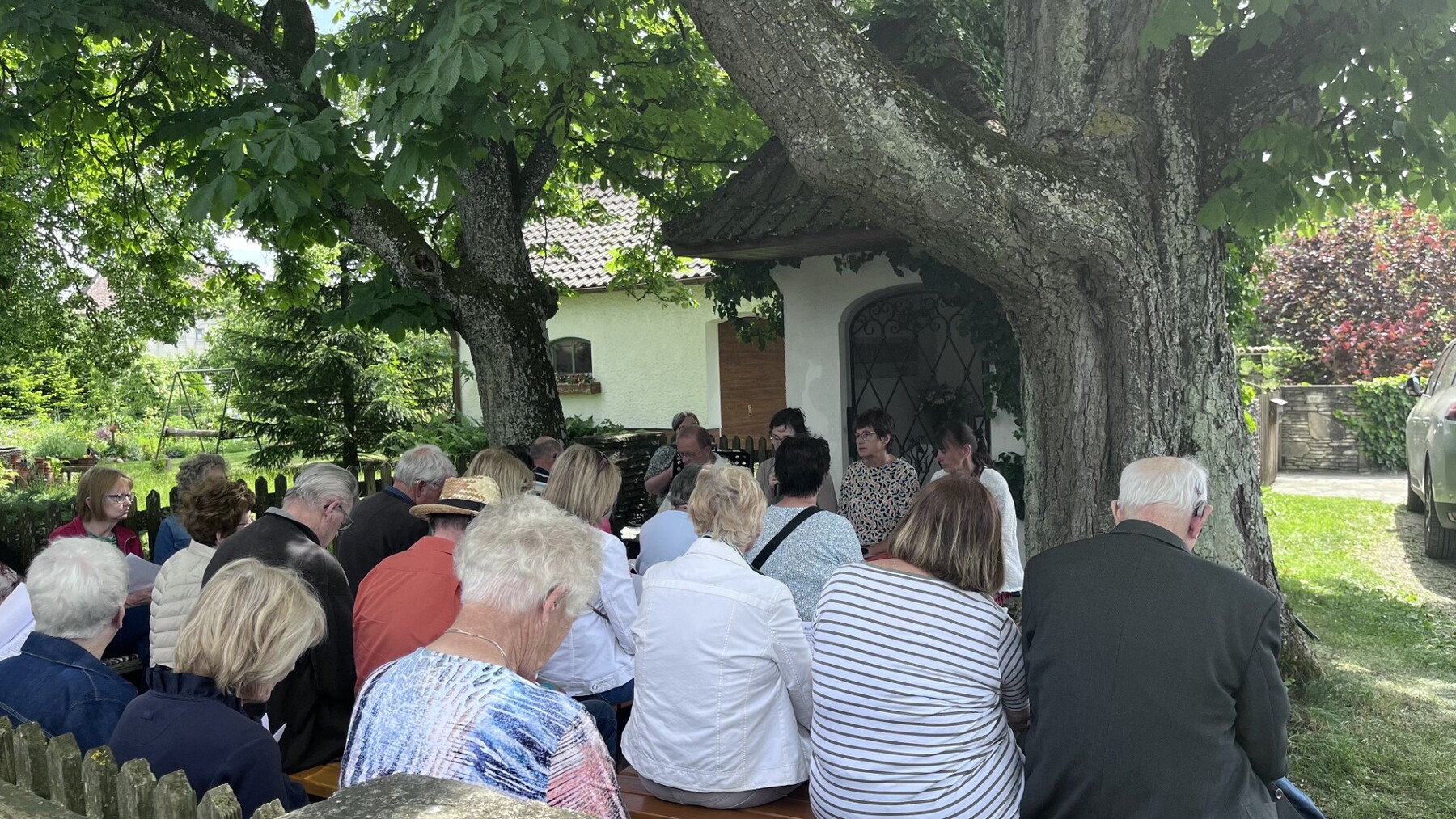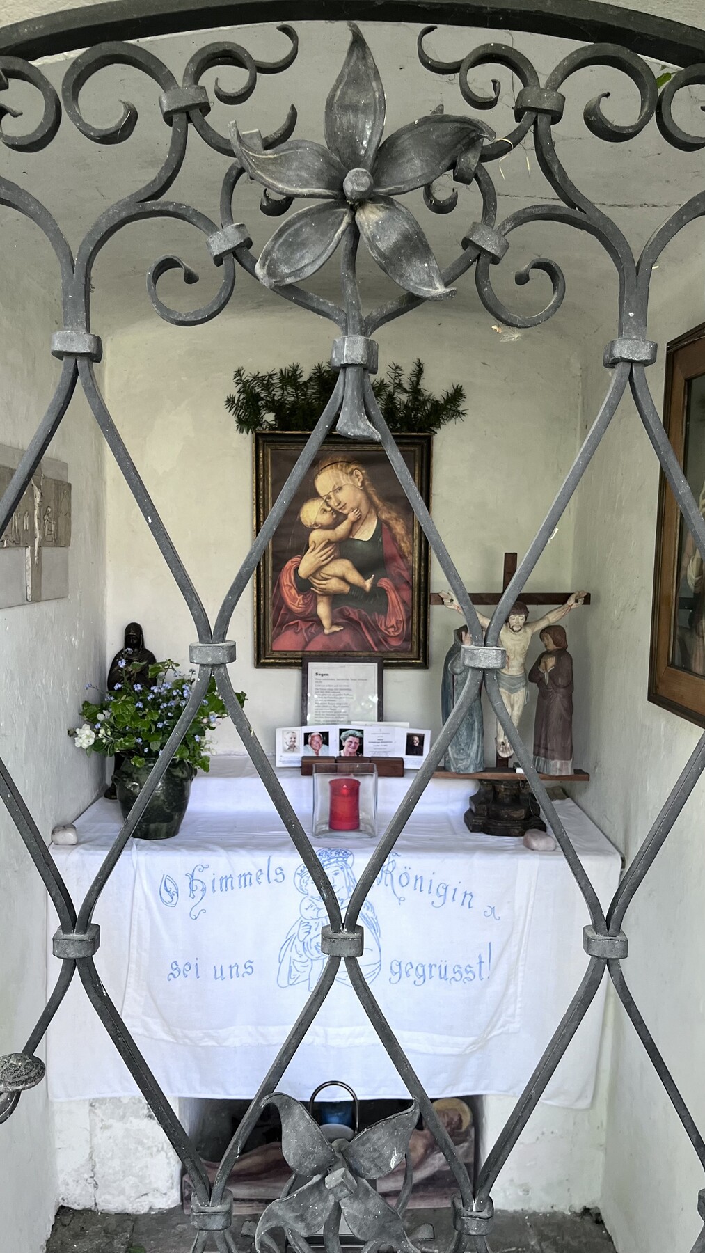 Eine sehr stimmige Feier war unsere heurige Mainandacht bei der „Kirchweger Kapelle“ in Wimpassing. Diese Kapelle wurde schon 1904 errichtet und immer wieder liebevoll restauriert. Ein perfekter Ort für unsere Maiandacht. Unter einem schattigen Kastanienbaum war Platz für alle Besucher, perfekt auch noch mit Bänken ausgestattet.