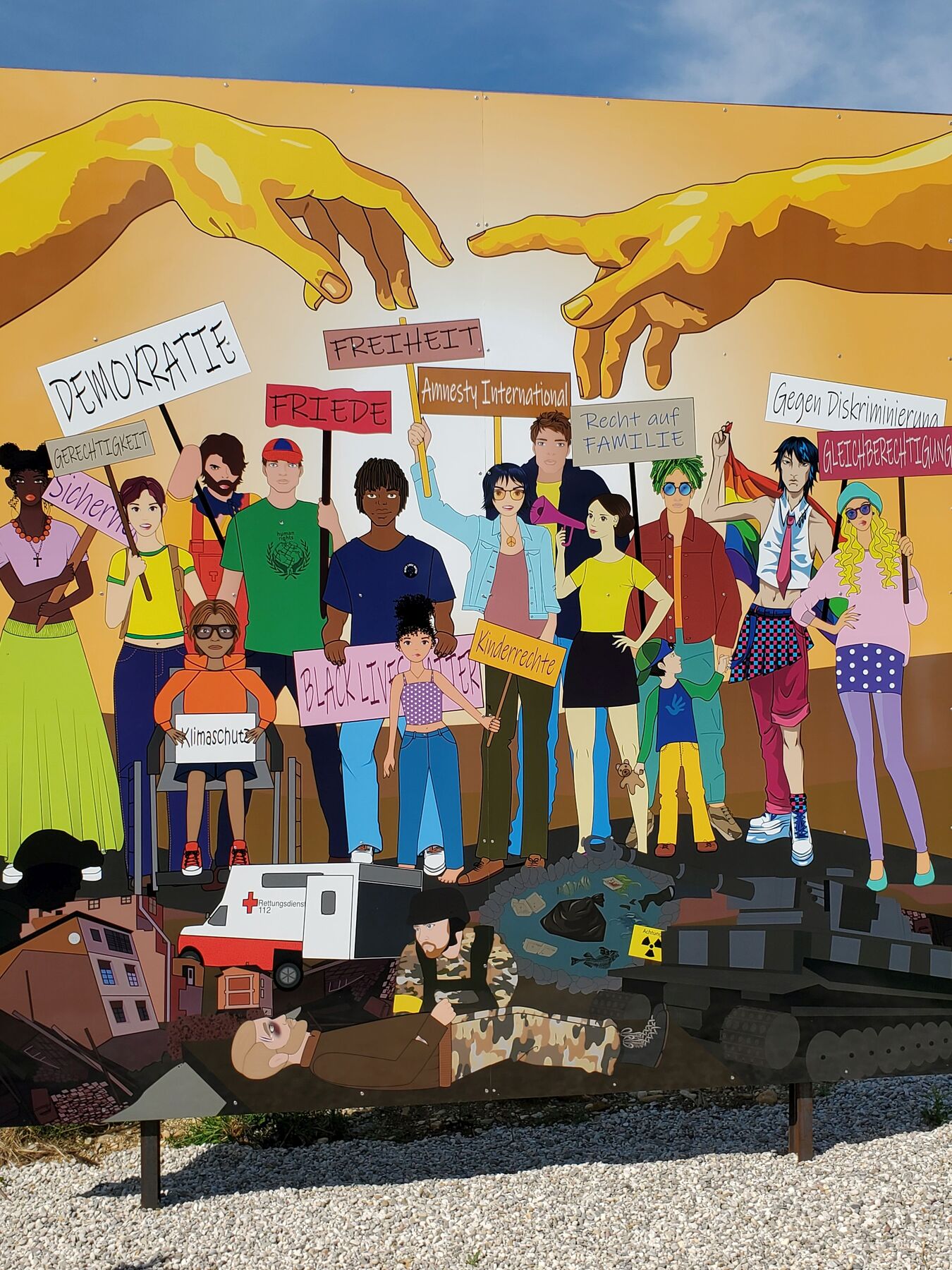 Dank der fachkundigen Leitung von Bernhard Zethofer, der diesen Weg mit einer seiner Schulklassen selbst mitgestaltet hat, bekamen wir sehr interessante Informationen über die Beweggründe und die Entstehung dieses beeindruckenden Projekts. Die "Arena der Menschenrechte" ist absolut sehenswert!