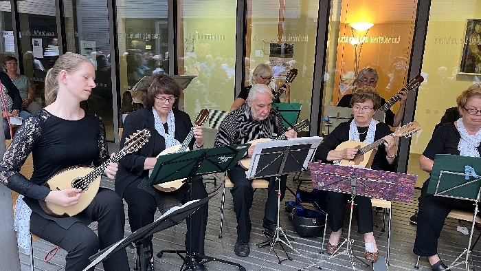 Musik vom Feinsten gab es bei Musik auf der Veranda mit dem Mandolinenorchester Wels. Das Atrium war gut gefüllt und die Konzertgäste genossen den lauen Abend bei diesem schon selten zu hörenden Sound!