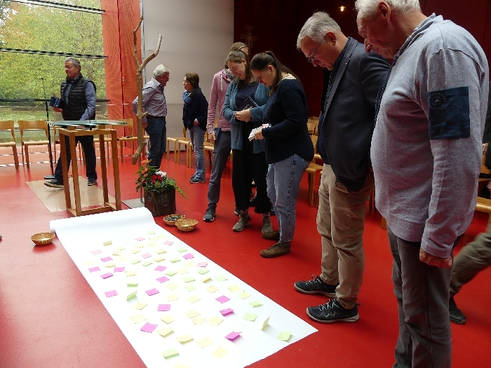 Für eine nachhaltige Lebensweise gibt es viele Möglichkeiten. Mitglieder des AK Friede Gerechtigkeit nannten beim Gottesdienst einige Beispiele: Second Hand, Biodiversität, Energiehaushalten oder Klimaticket. Die folgenden Anregungen aller Gottesdienstbesucher:innen ergab eine lange Liste.