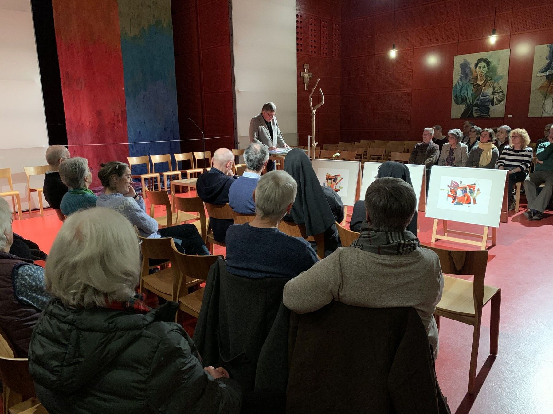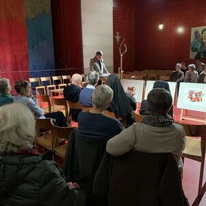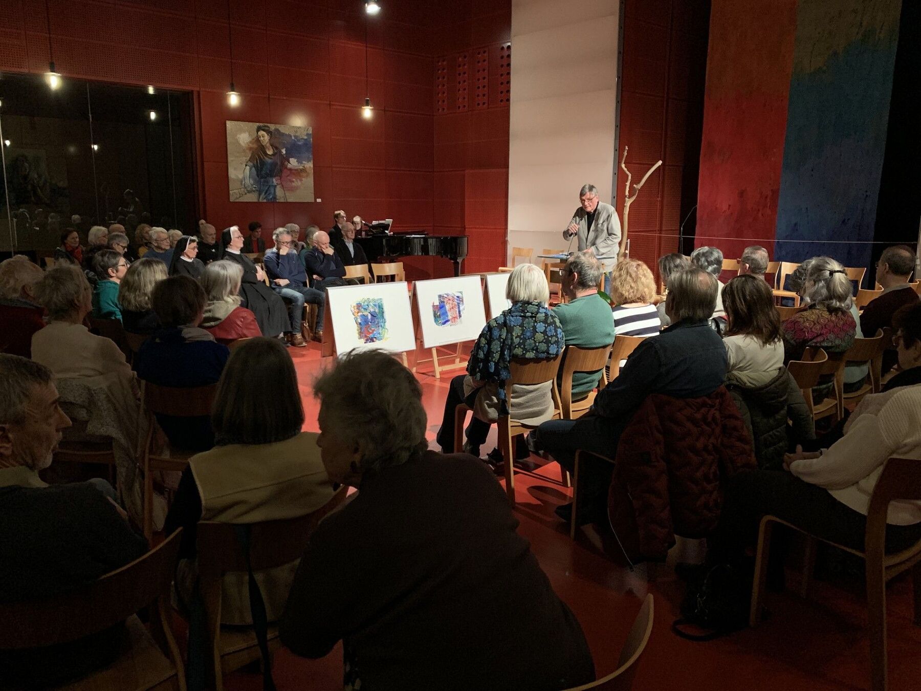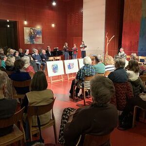 Auf Anregung der Künstlerin Mercè Picó-Kirchmayr hat Wilhelm Achleitner von Theologieprofessor Gottfried Bachl erzählt und aus dem Gottfried Bachl Lesebuch „Das flüchtige Nu des Leben“ beeindruckende Texte ausgewählt, begleitet von fünf Liedern, wunderschön vorgetragen von Monika und Ilia Deinhammer und Eva Demelmair, am Klavier Stephan Deinhammer. Mit zwei Mundart-Gedichten war die Stimme Gottfried Bachls auch zu hören. Zudem hat Mercè Picó mit sechs Collagen, davon drei unmittelbar zum Lesebuch, drei zu Psalmen ihre große Kunst zum Ausdruck gebracht. Danke für die eindrucksvolle Feier.
