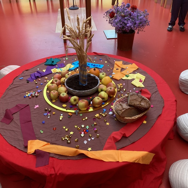 Beim diesjährigen Erntedankfest in der Pfarre stand die Erde im Mittelpunkt. Die Erde, die uns trägt und die uns Nahrung gibt. Die Kinder durften dabei den Tisch schmücken und im Anschluss des Gottesdienstes Butterbrote und Äpfel essen.